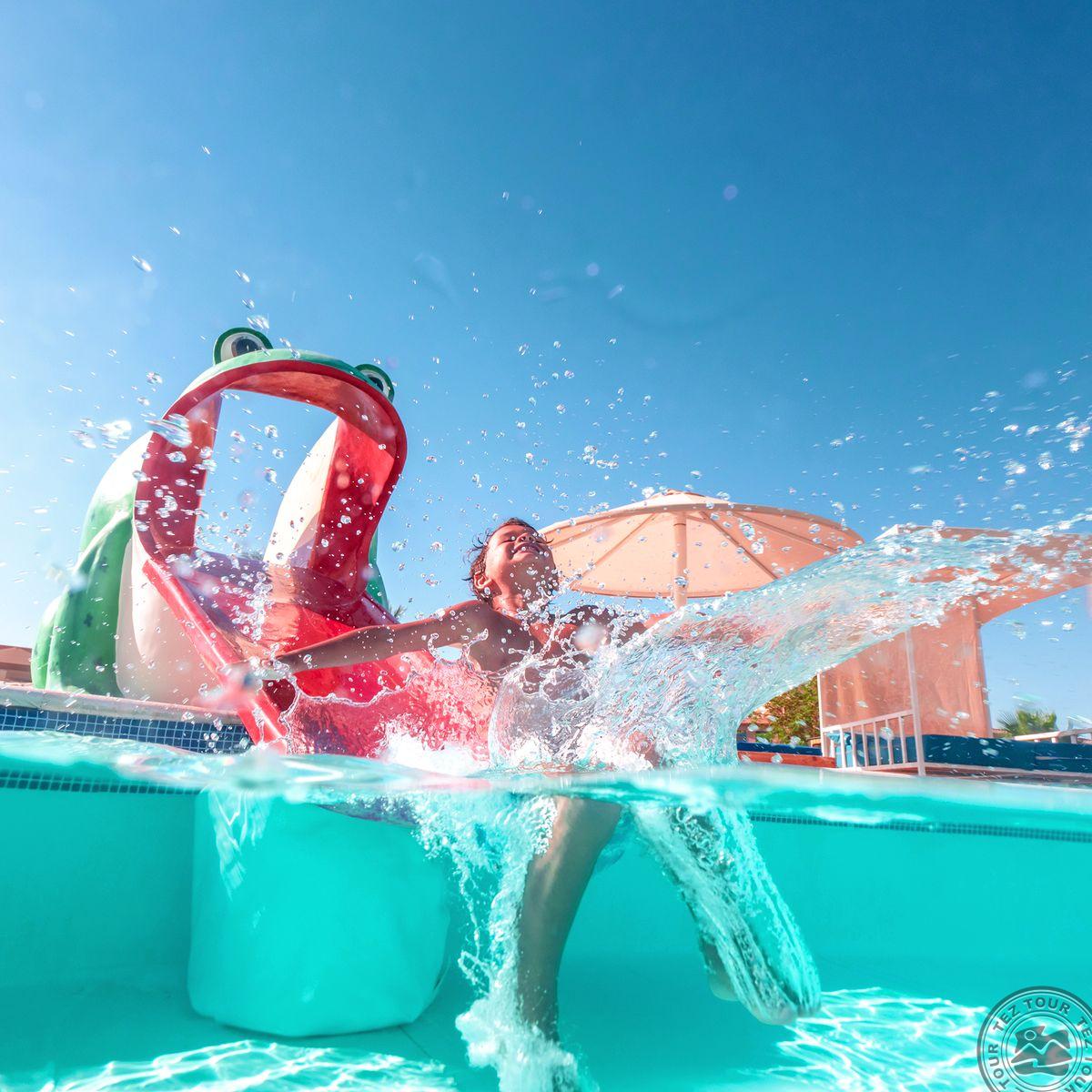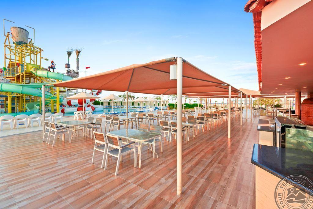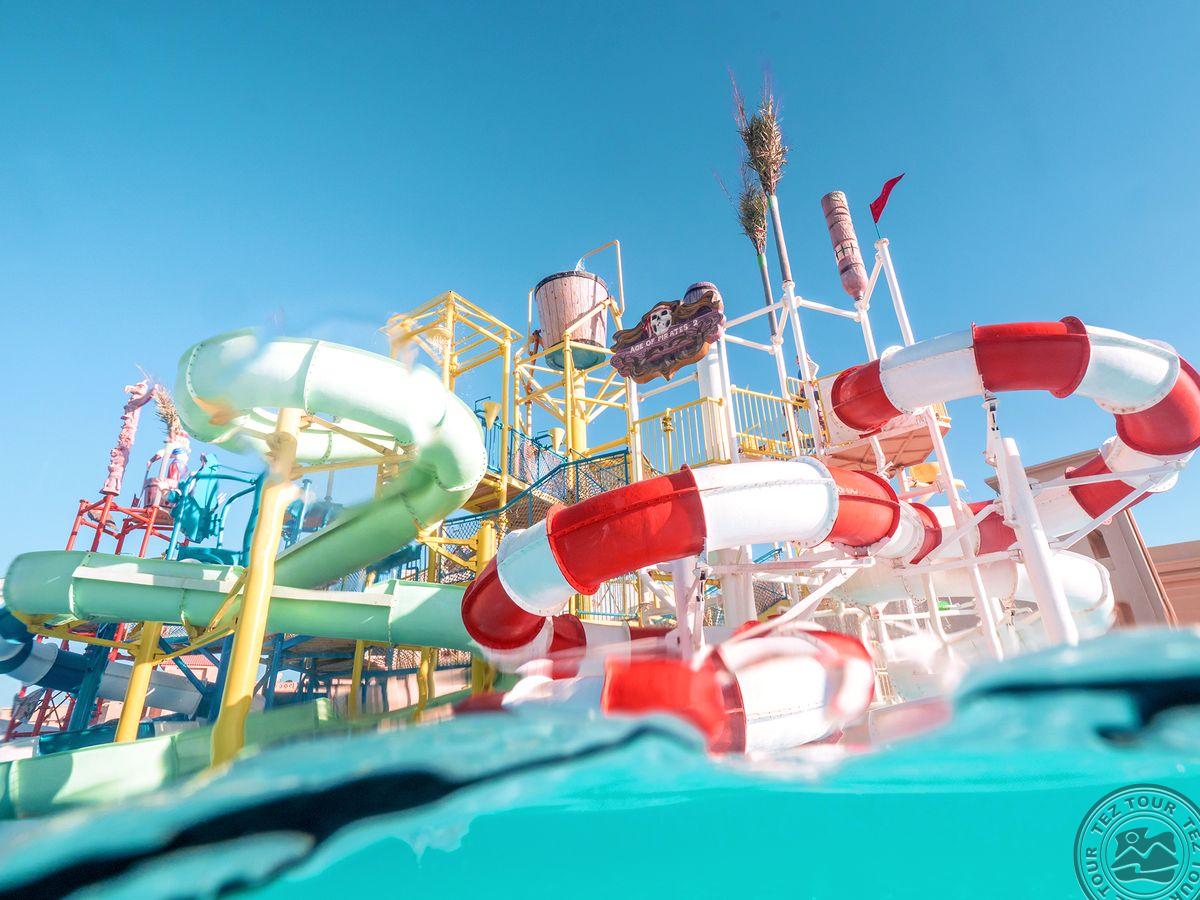 В настоящий момент времени гости всех 3-х отелей могут пользоваться аквапарком, ресторанами, барами, и бассейнами всех трех отелей бесплатно.