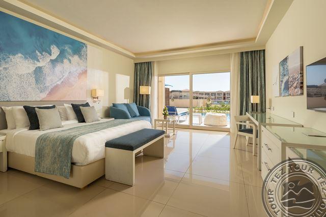 Swim Up room (Pool view, 52 м2, макс. 3 чел, спальня с King size bed, включая ванную комнату и террасу с выходом к общему бассейну). Предоставляется только 1 доп. кровать – раскладная кровать.