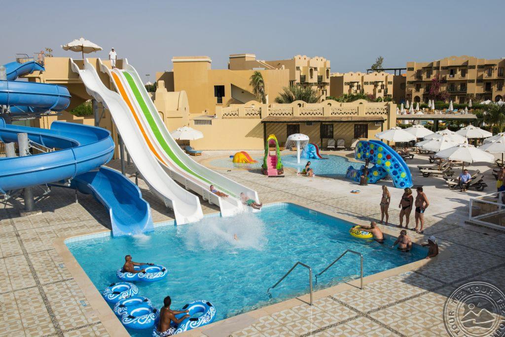 в 25 км от аэропорта Хургады, в 1 км от центра Эль-Гуны, на самом берегу лагуны.