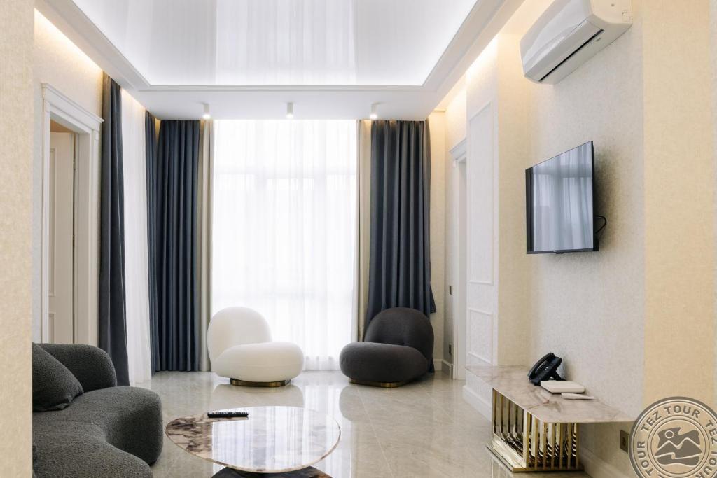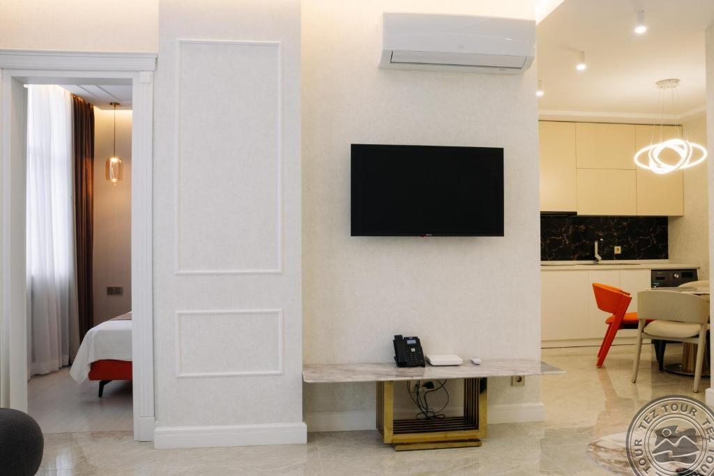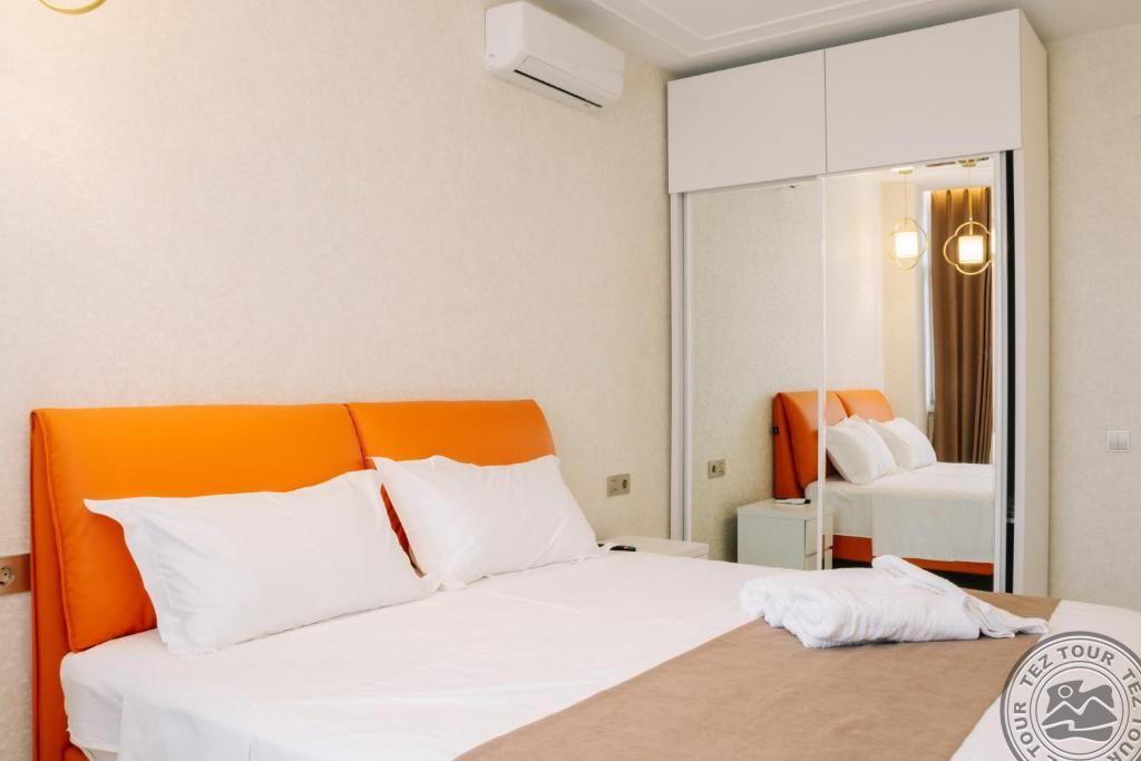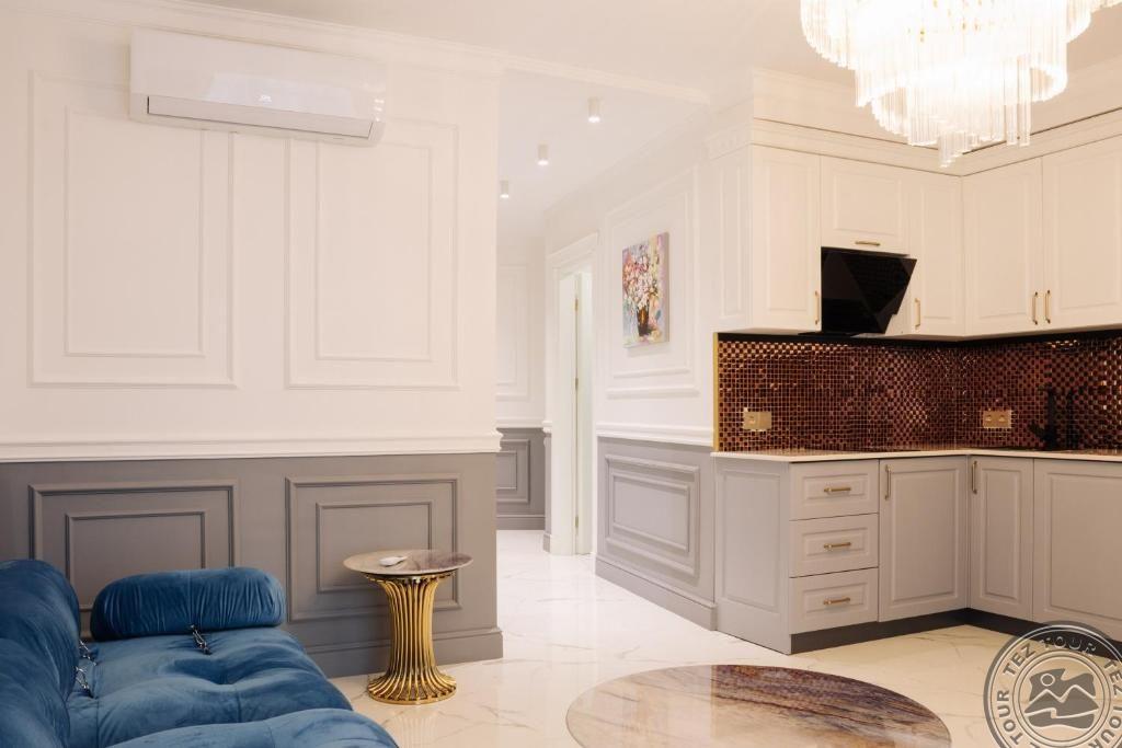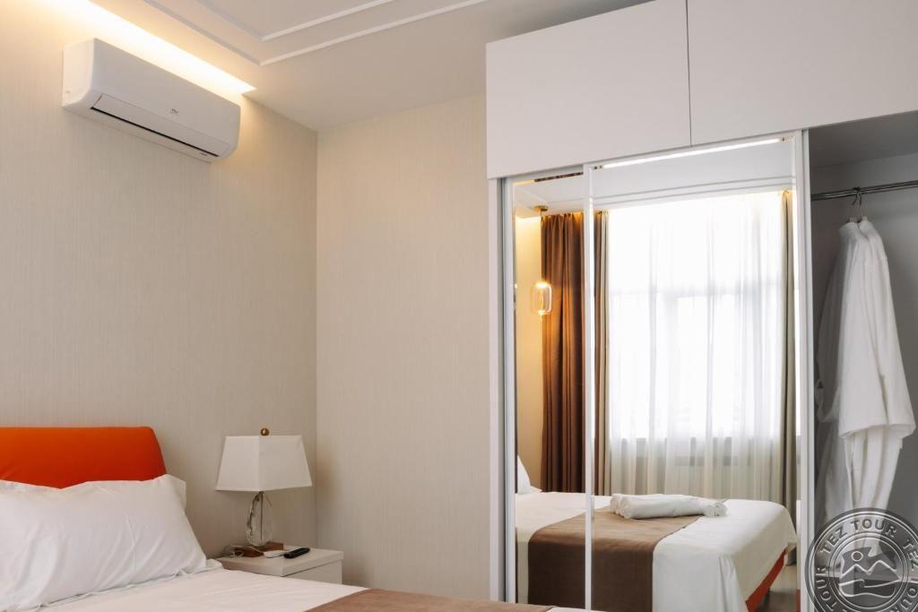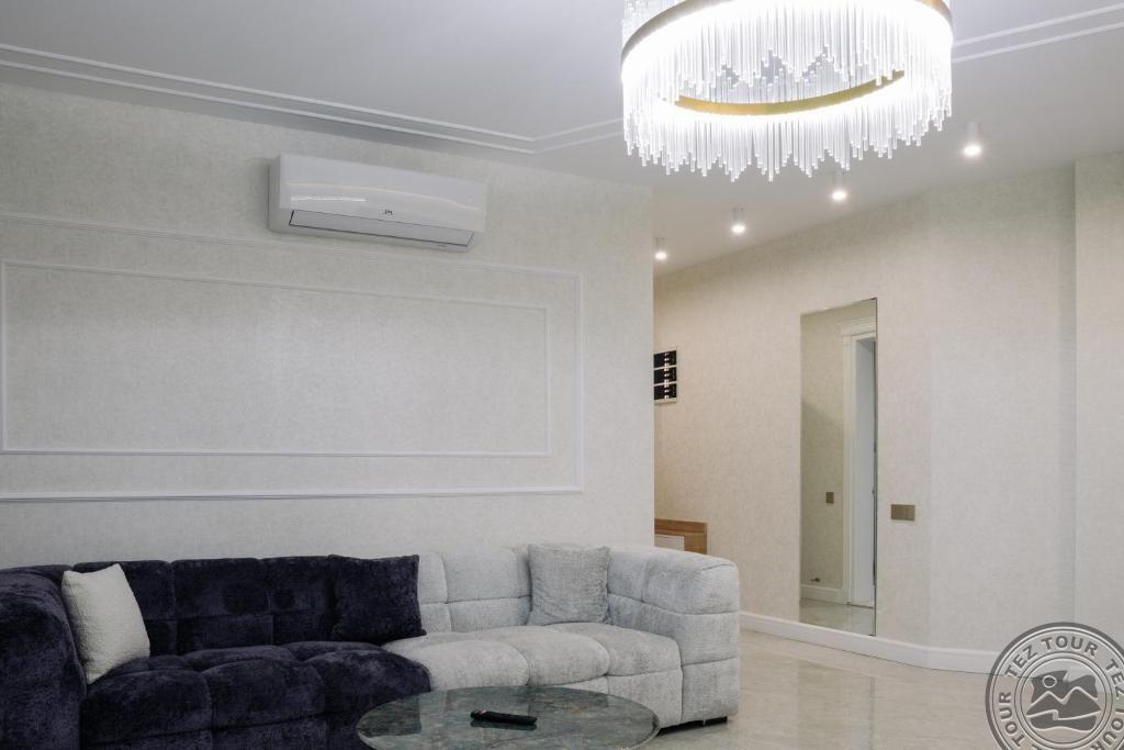 ONE BEDROOM APARTMENT (гостиная с кухней и диваном (не раскладывается ), спальня с дверью, двуспальная кровать, макс. 2 чел. + реб до 6 лет, 40-45 м2);