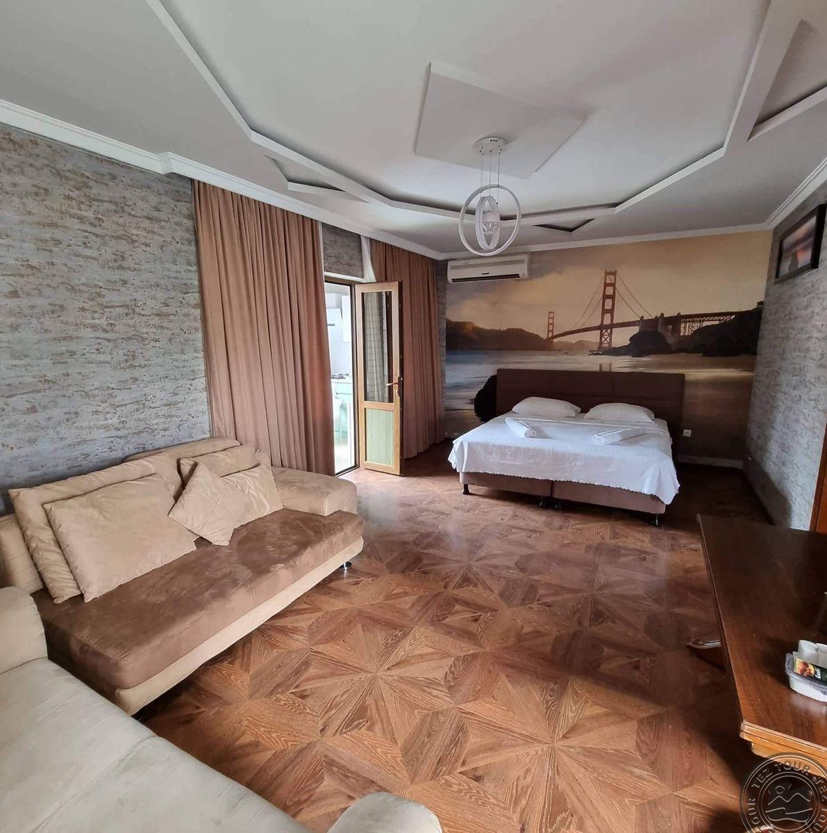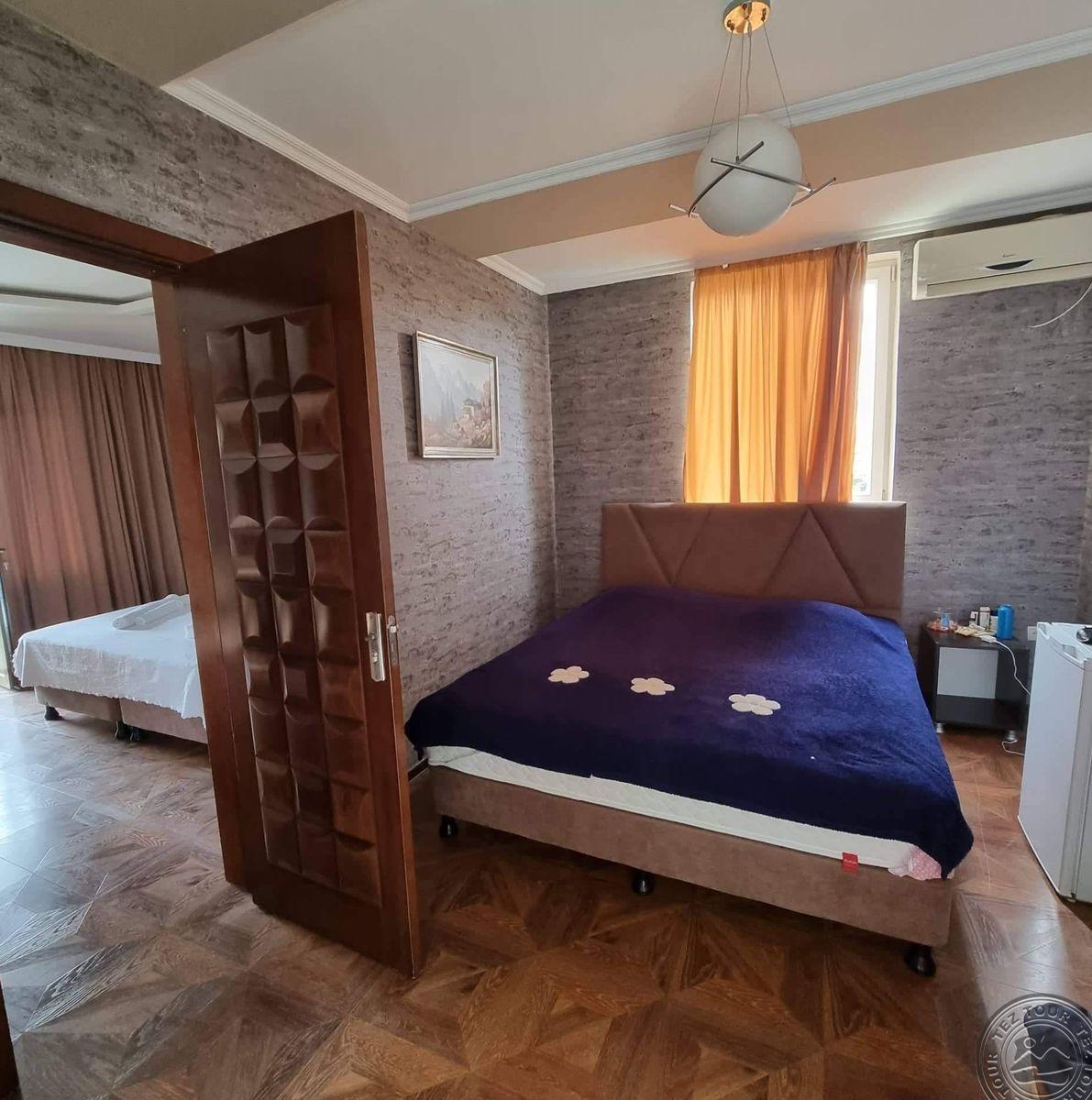 в Кобулети, в 23 км от города Батуми, в 27 км аэропорт Батуми, в 50 м от пляжа.