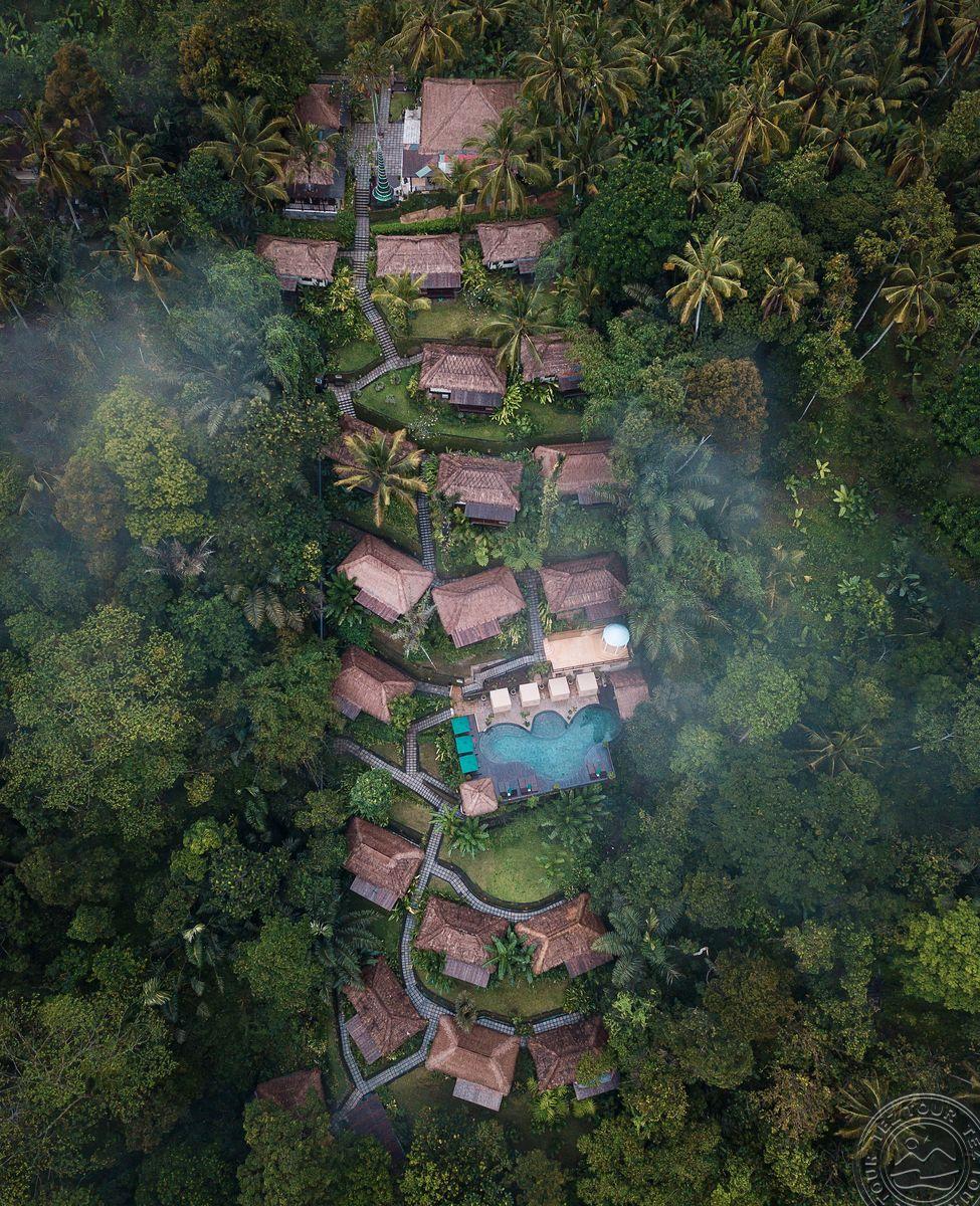 в центре острова, в 15 км от центра Убуда, в 50 км от аэропорта, в 50 км от Куты, в 38 км от пляжа Санур.