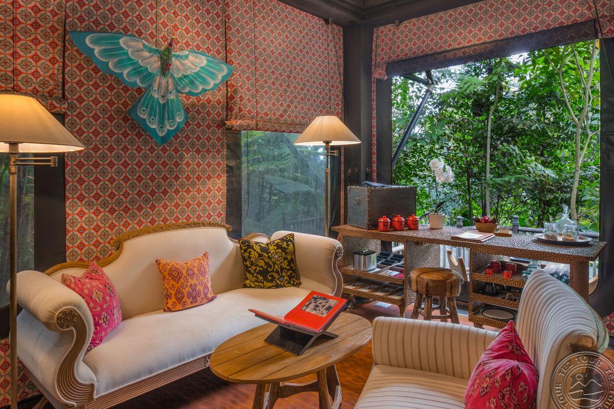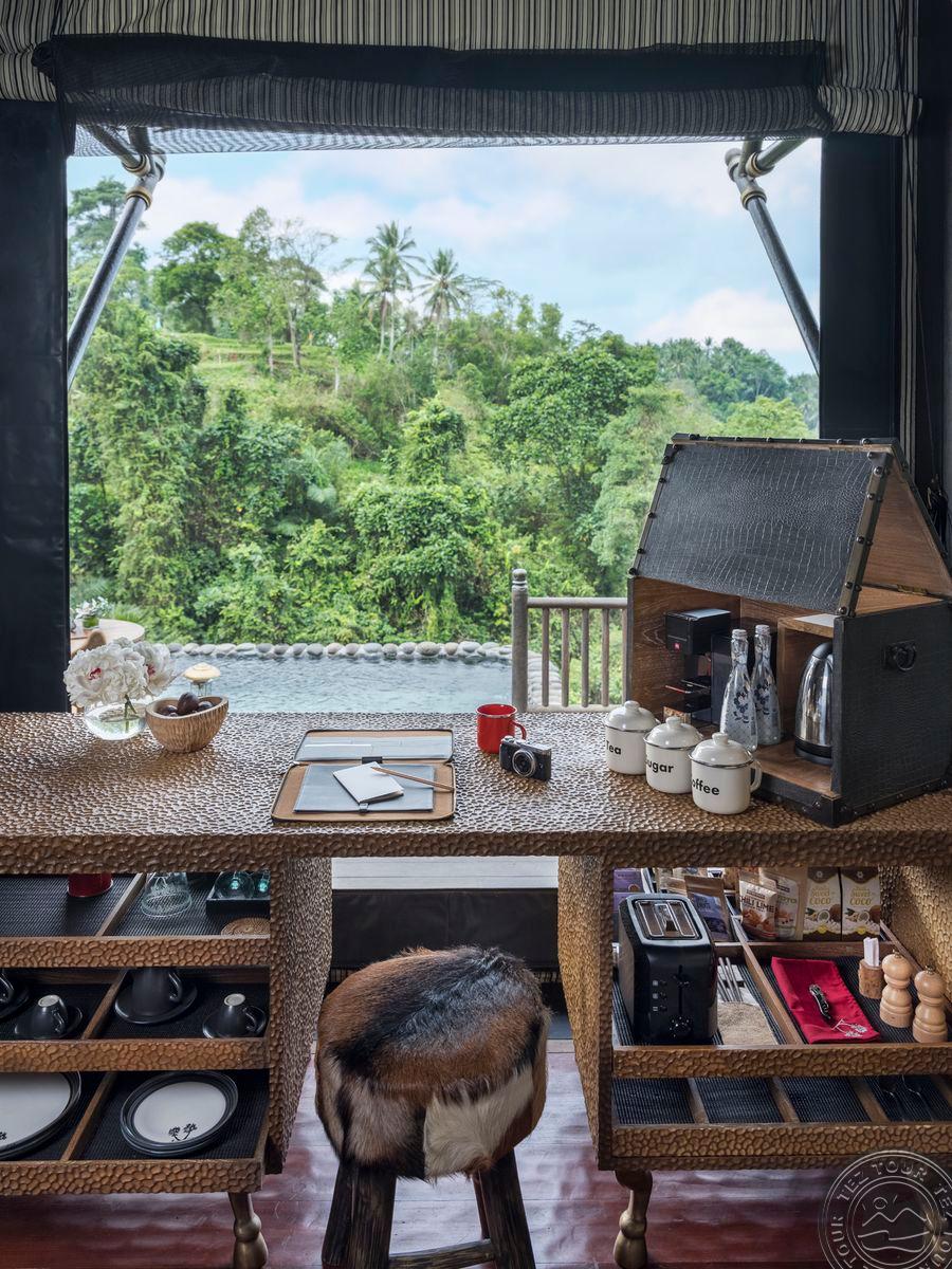 Дизайн разработан известным архитектором Биллом Бенсли, одним из 100 лучших дизайнеров мира по версии престижных журналов Time и Architectural Digest. Вдохновленный бытом первых европейскими поселенцами на Бали в начале 1800-х годов, отель состоит из тентов, каждый из которых имеет индивидуальный дизайн, основанный на персонажах и профессиях первых исследователей, таких как капитан, натуралист, картограф, переводчик, изготовитель игрушек и коллекционер рогов. Уникальный способ оживить экзотическое прошлое Бали. Высокий уровень обслуживания, красивые виды на долину.