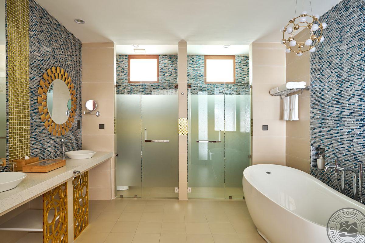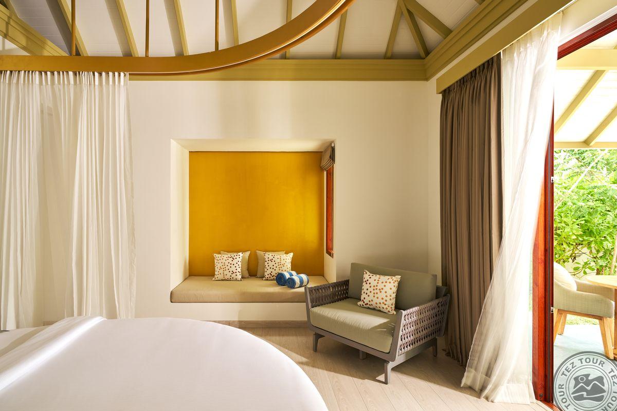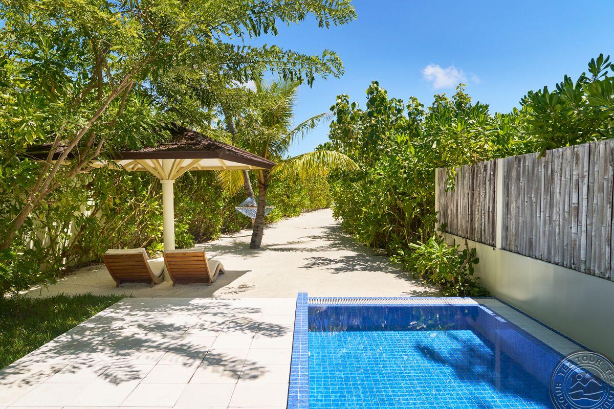 71 Romantic Beach Villa with Pool (91 м², макс. 2 взрослых). Береговые виллы. Спальня с кроватью king-size, ванная комната с ванной и душем, частный бассейн, терраса.
