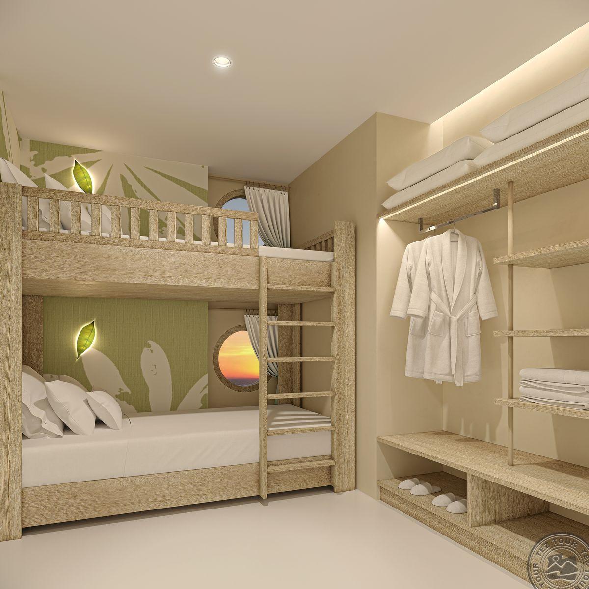 12 Mirage Panoramic Room (внутри 39 м² + терраса 10 м2, макс. 2+2 чел.). Номера расположены на втором этаже двухэтажных блоков. Кровать king-size (2 х 2 м), а также двухъярусная кровать (1 х 2 м).