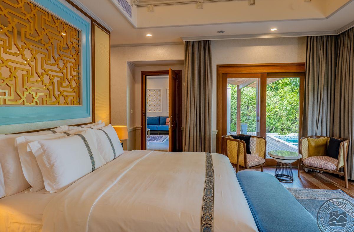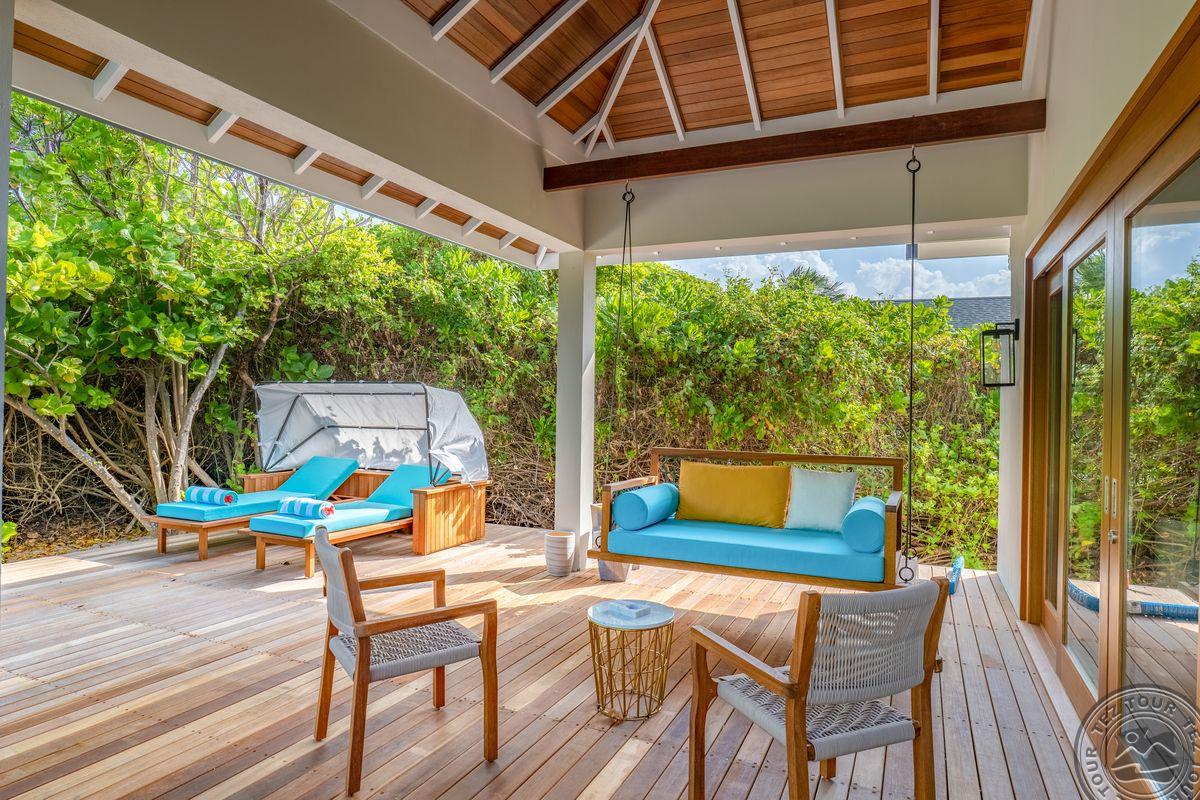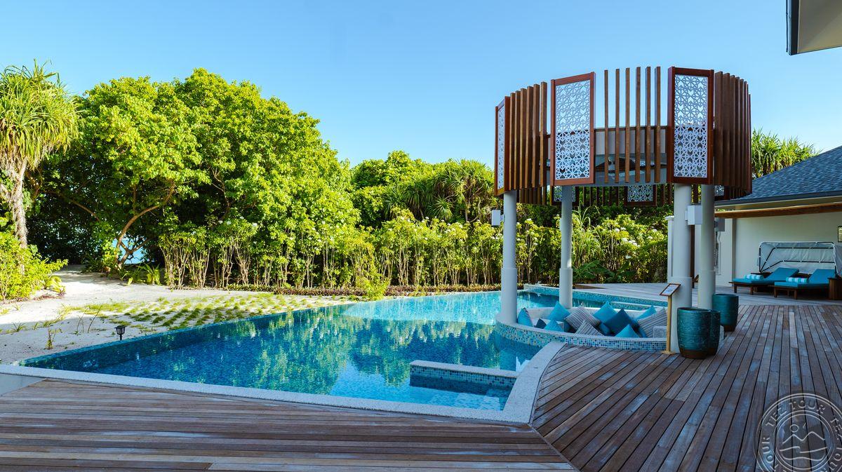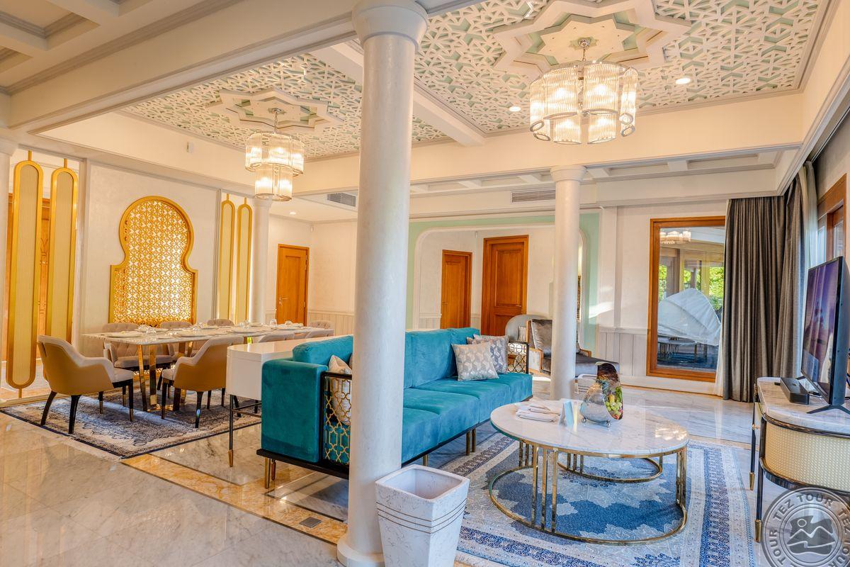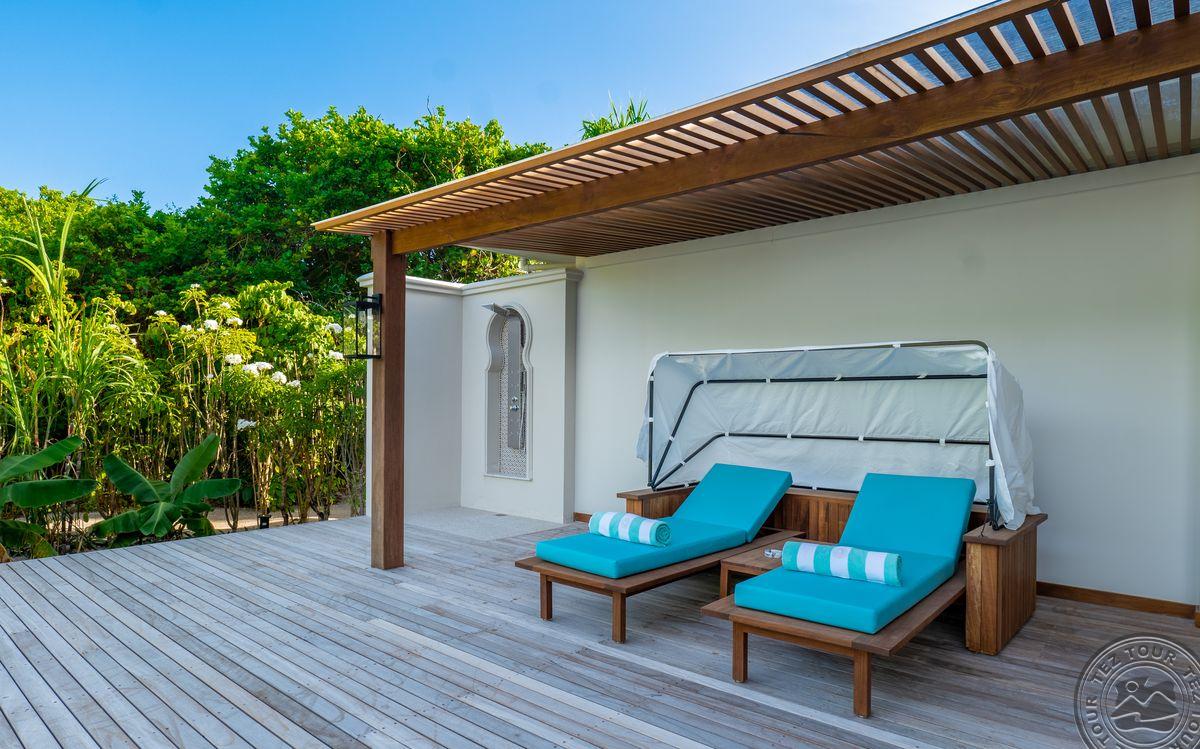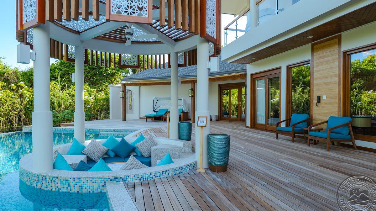 5 Sultan Beach Residence with Sunset Pool (4 BR) (двухэтажная вилла, гостиная, 4 спальни (в 3 спальнях кровати King, одна спальня с кроватями Twin), 4 ванные комнаты, парная, тренажерный зал, терраса с шезлонгами, душ на открытом воздухе, барбекю, бассейн с джакузи (99 м2), водная горка, беседка, комната для няни, прямой доступ на пляж, макс. 9 чел., 1100 м2).