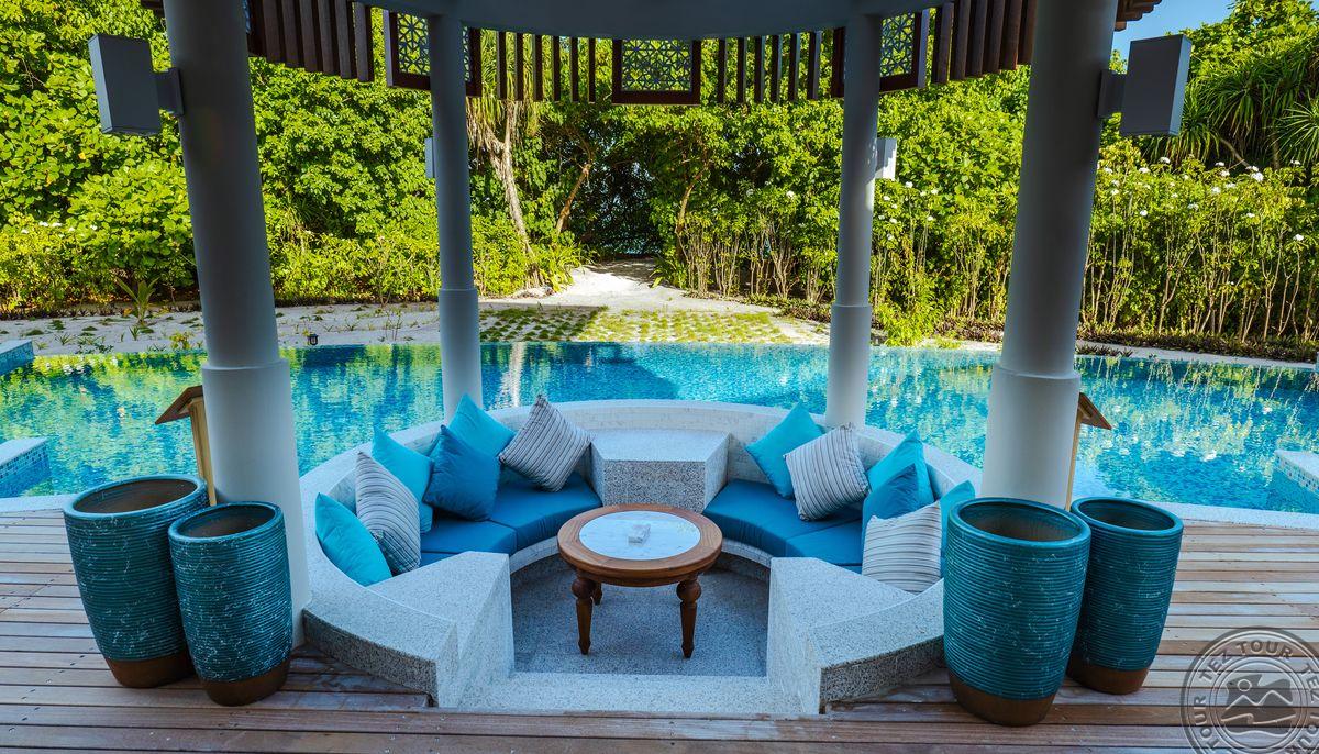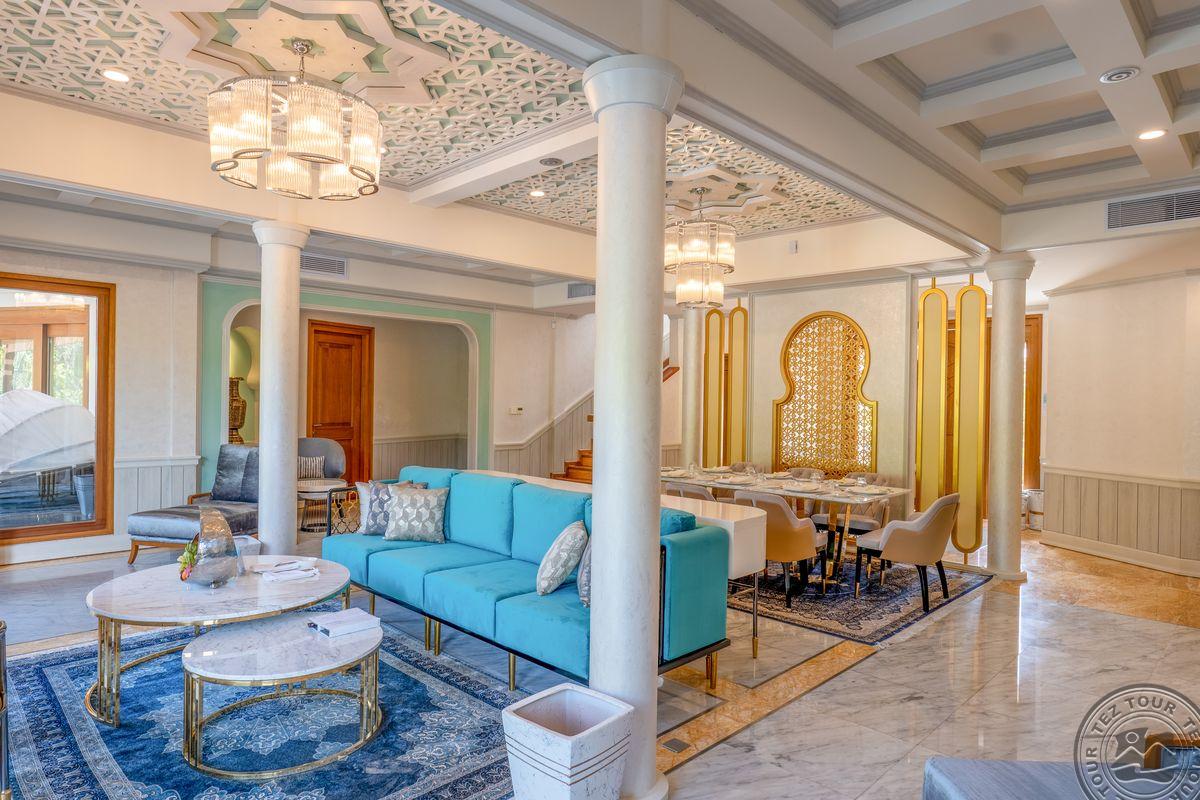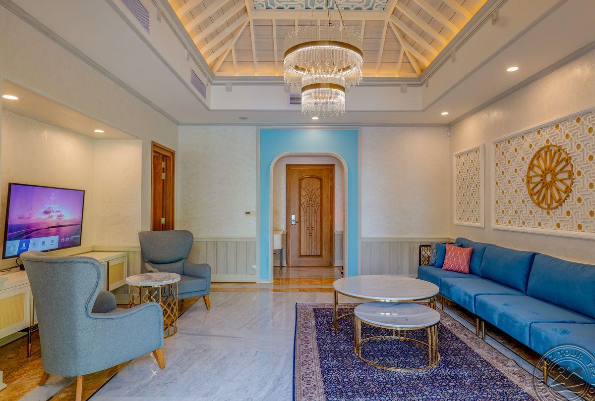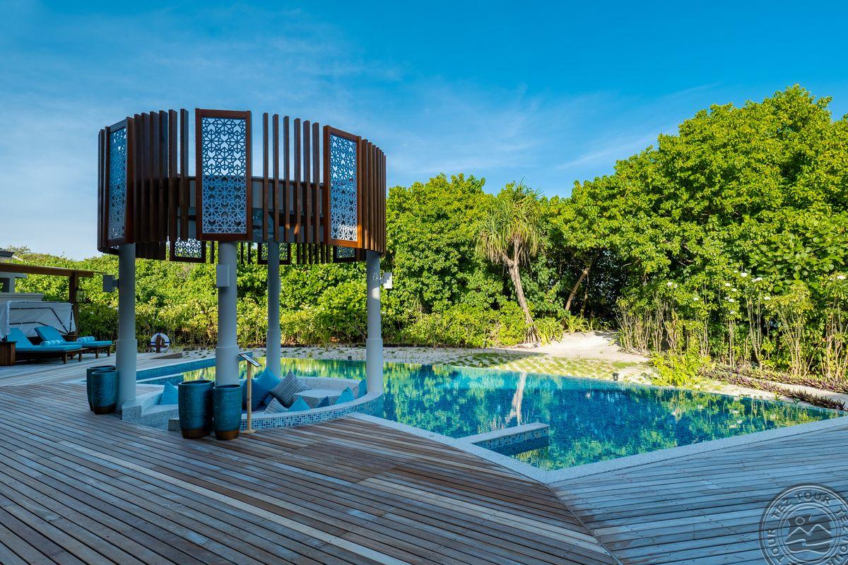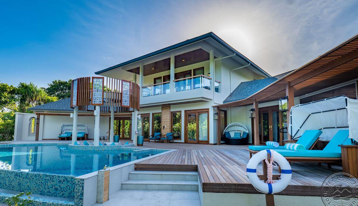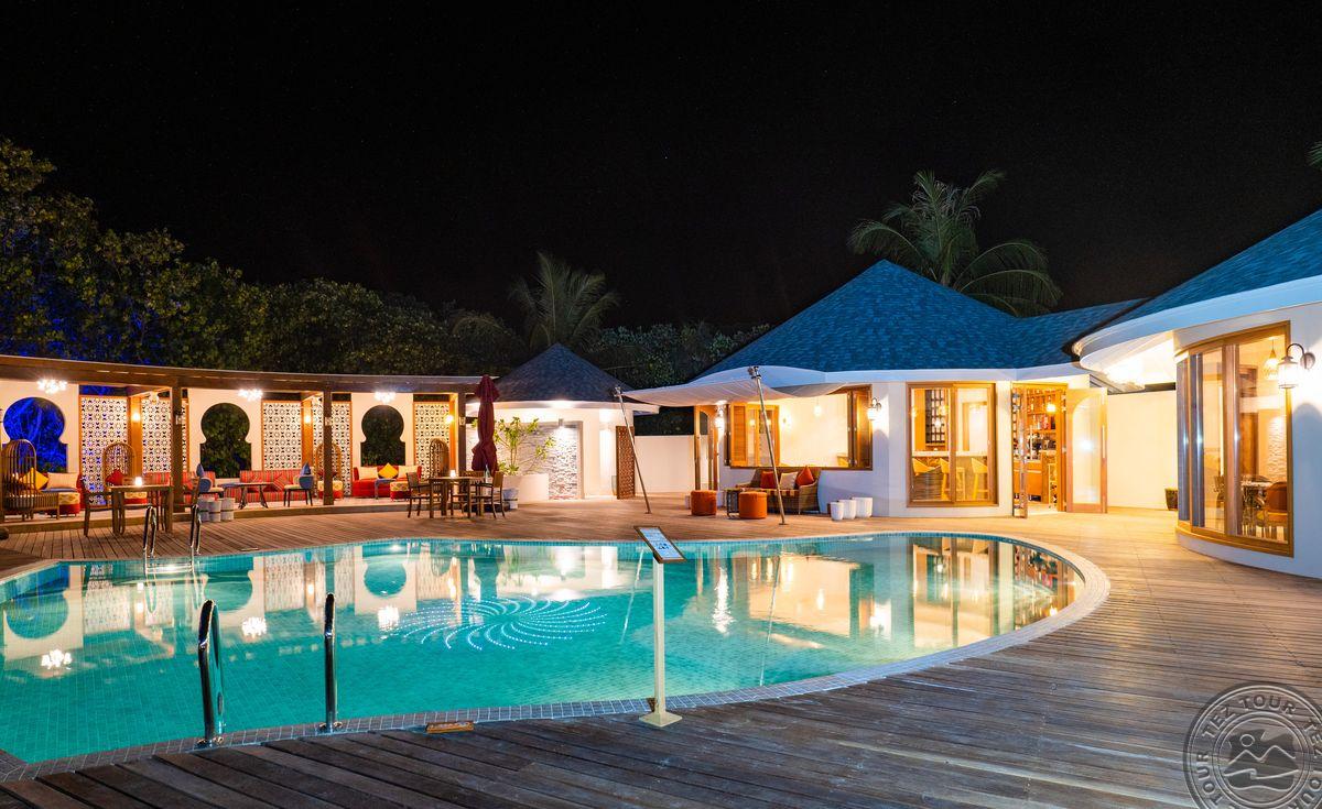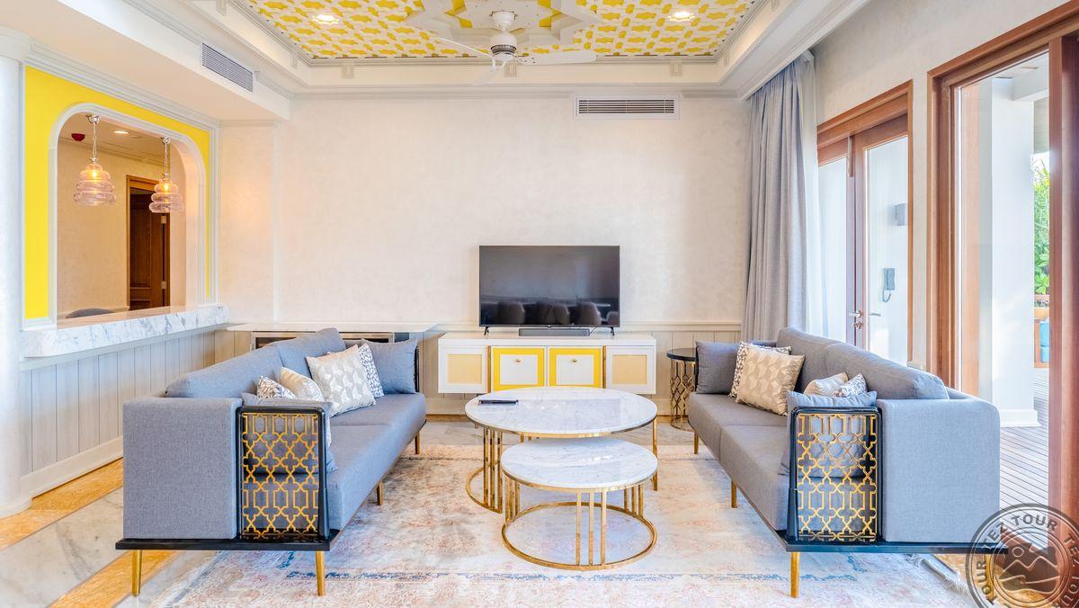 5 Sultan Beach Residence with Sunset Pool (4 BR) (двухэтажная вилла, гостиная, 4 спальни (в 3 спальнях кровати King, одна спальня с кроватями Twin), 4 ванные комнаты, парная, тренажерный зал, терраса с шезлонгами, душ на открытом воздухе, барбекю, бассейн с джакузи (99 м2), водная горка, беседка, комната для няни, прямой доступ на пляж, макс. 9 чел., 1100 м2).