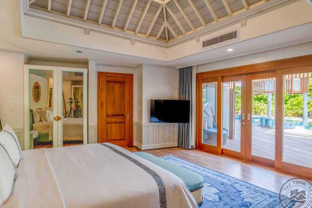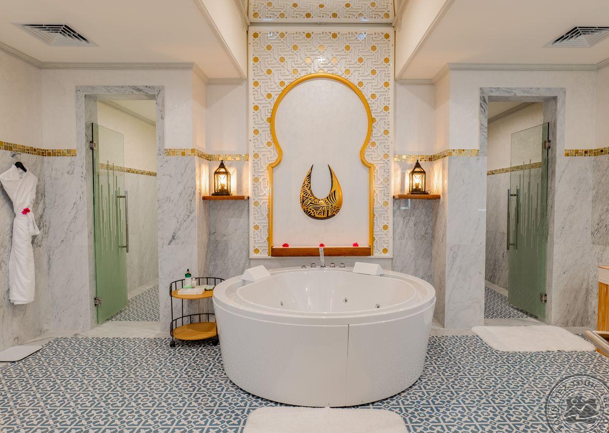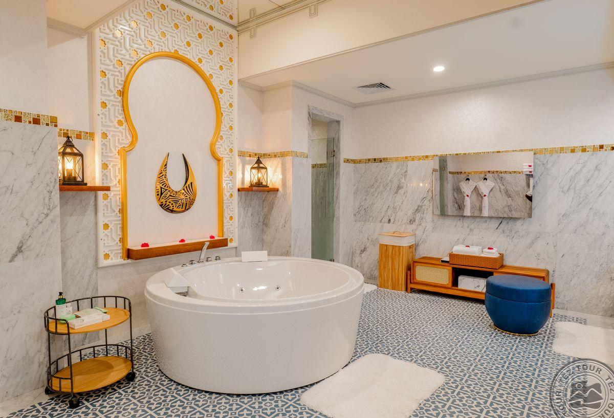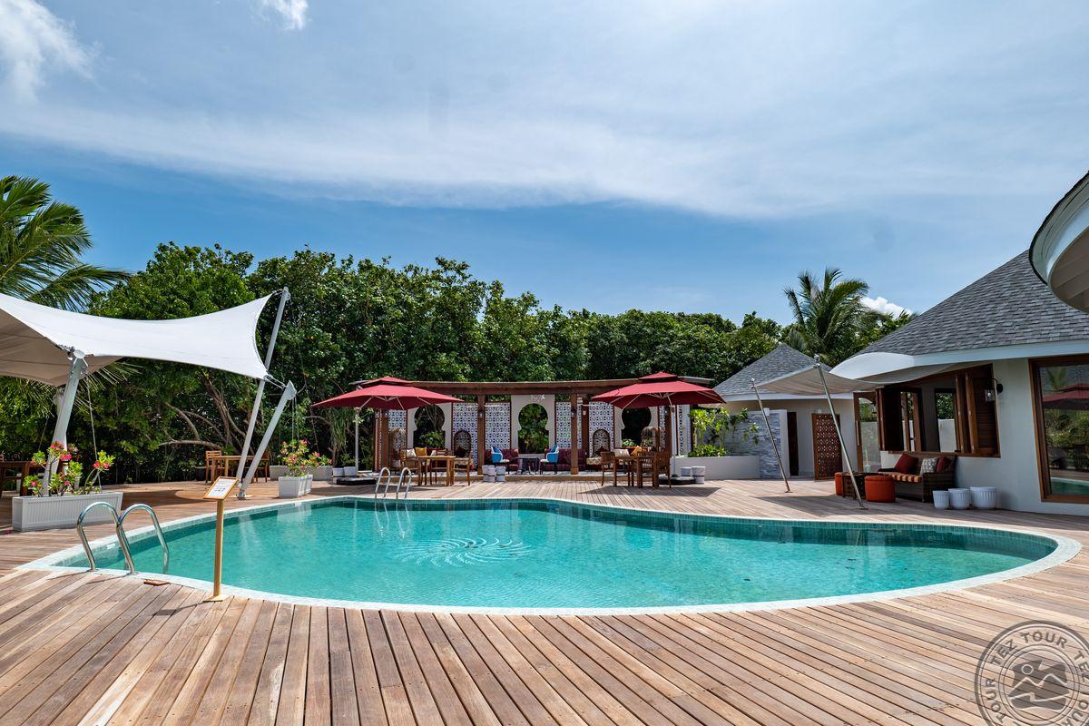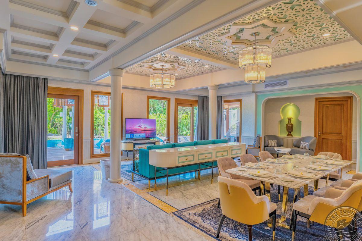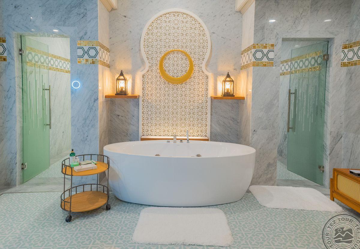 5 Sultan Beach Residence with Sunset Pool (4 BR) (двухэтажная вилла, гостиная, 4 спальни (в 3 спальнях кровати King, одна спальня с кроватями Twin), 4 ванные комнаты, парная, тренажерный зал, терраса с шезлонгами, душ на открытом воздухе, барбекю, бассейн с джакузи (99 м2), водная горка, беседка, комната для няни, прямой доступ на пляж, макс. 9 чел., 1100 м2).