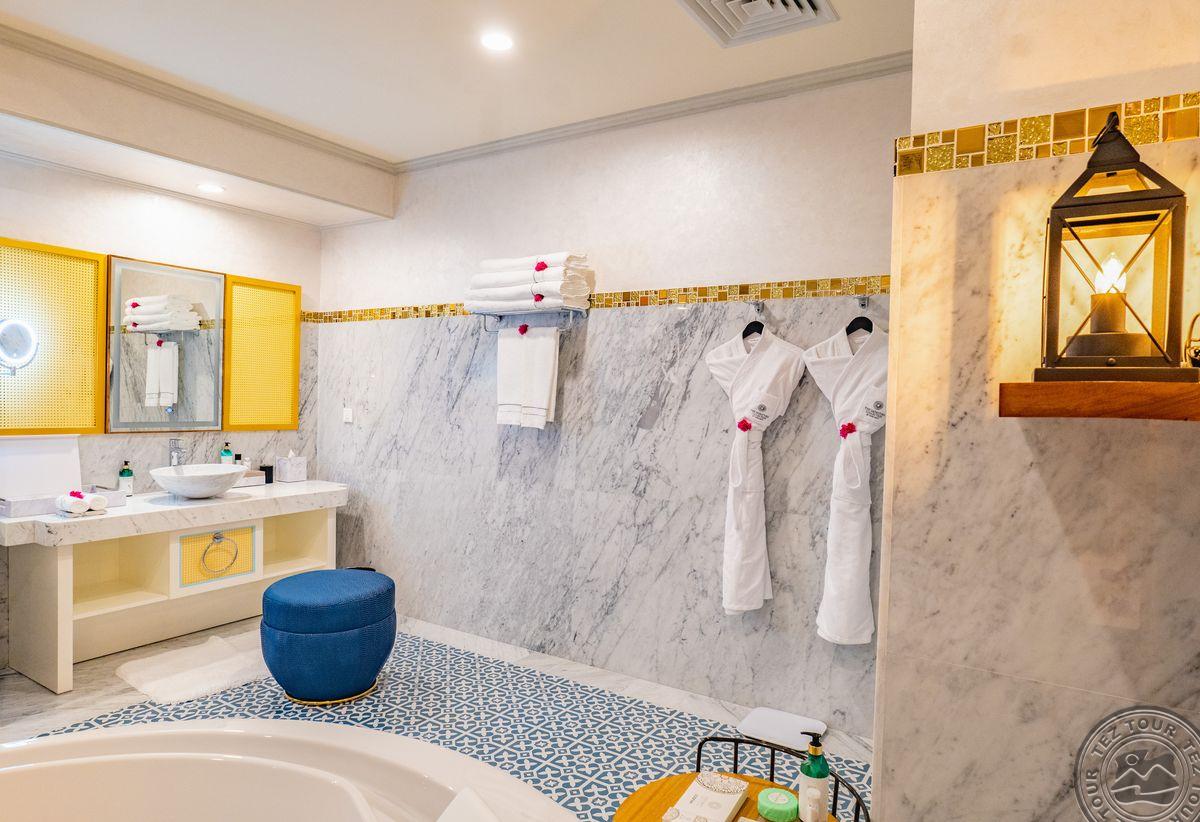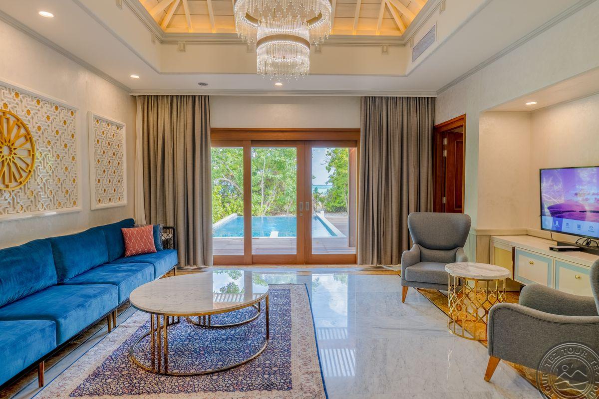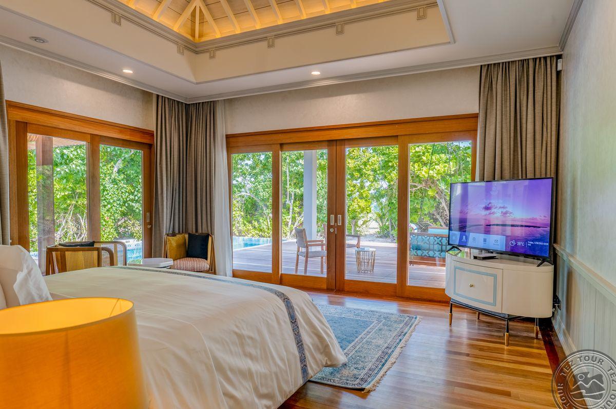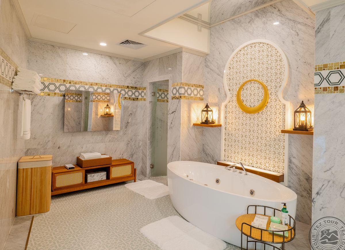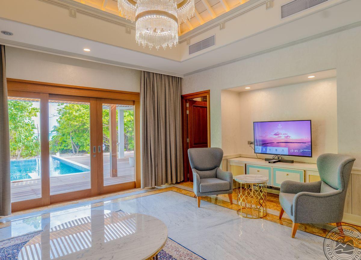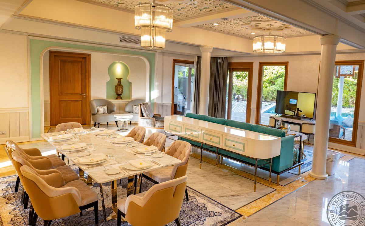 5 Sultan Beach Residence with Sunset Pool (4 BR) (двухэтажная вилла, гостиная, 4 спальни (в 3 спальнях кровати King, одна спальня с кроватями Twin), 4 ванные комнаты, парная, тренажерный зал, терраса с шезлонгами, душ на открытом воздухе, барбекю, бассейн с джакузи (99 м2), водная горка, беседка, комната для няни, прямой доступ на пляж, макс. 9 чел., 1100 м2).