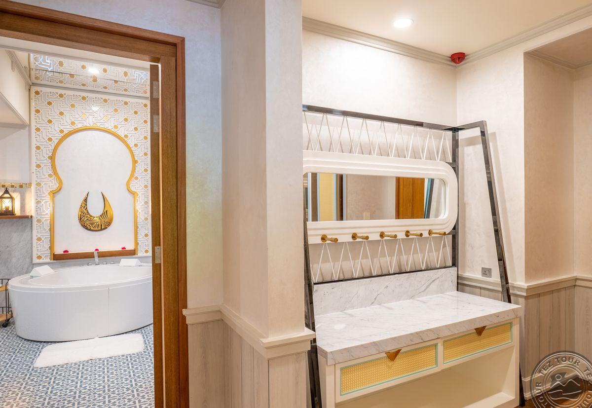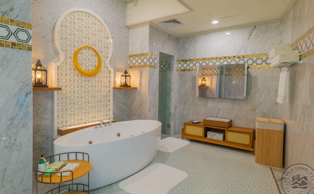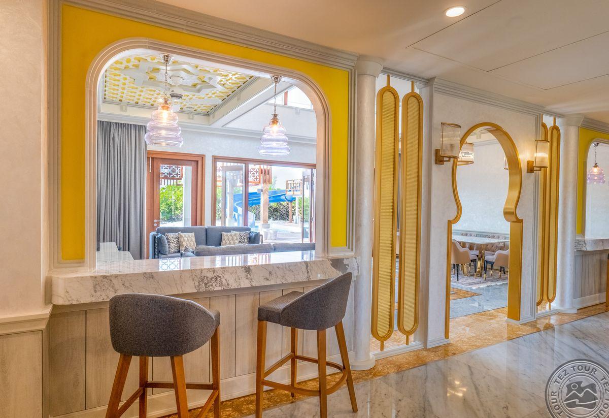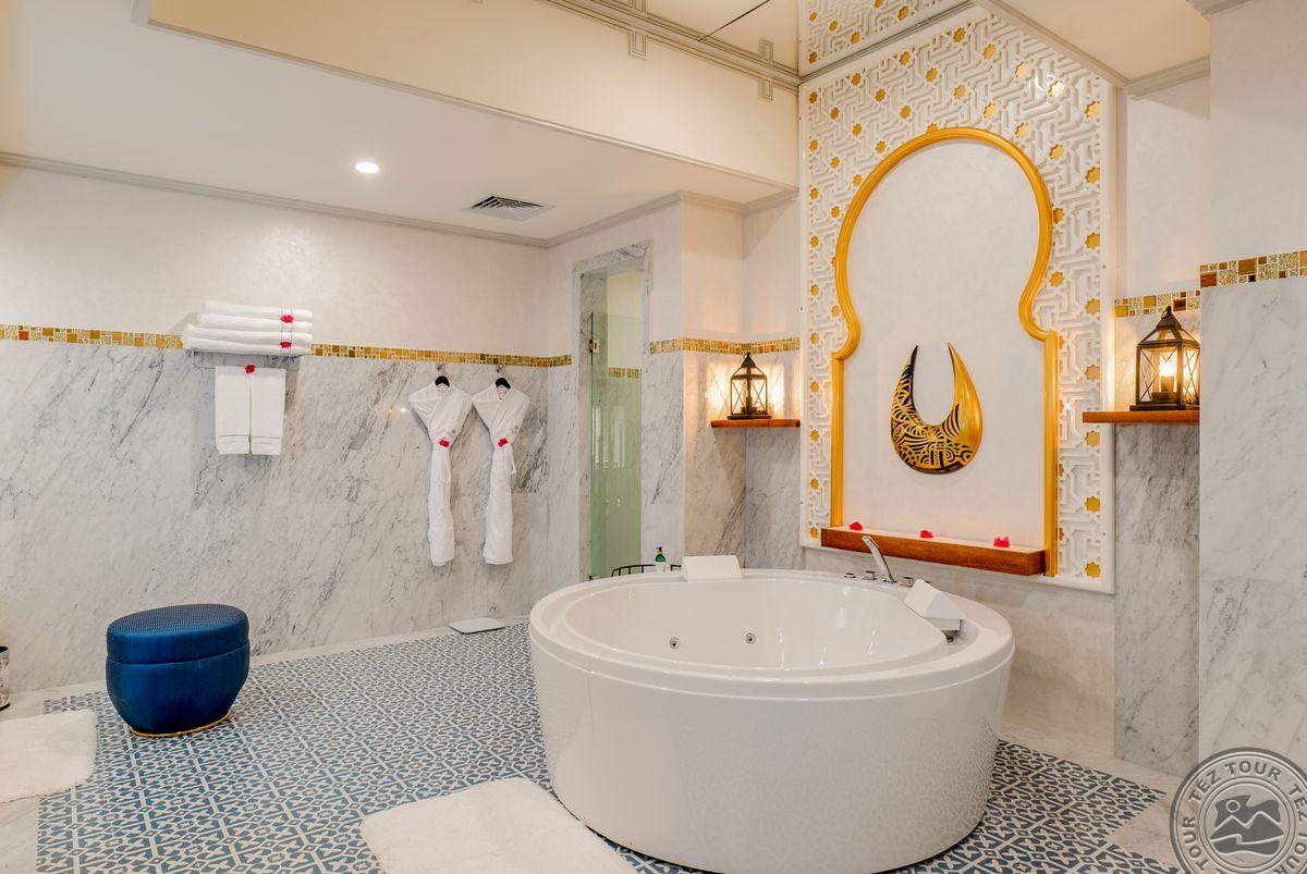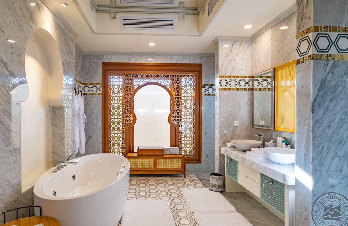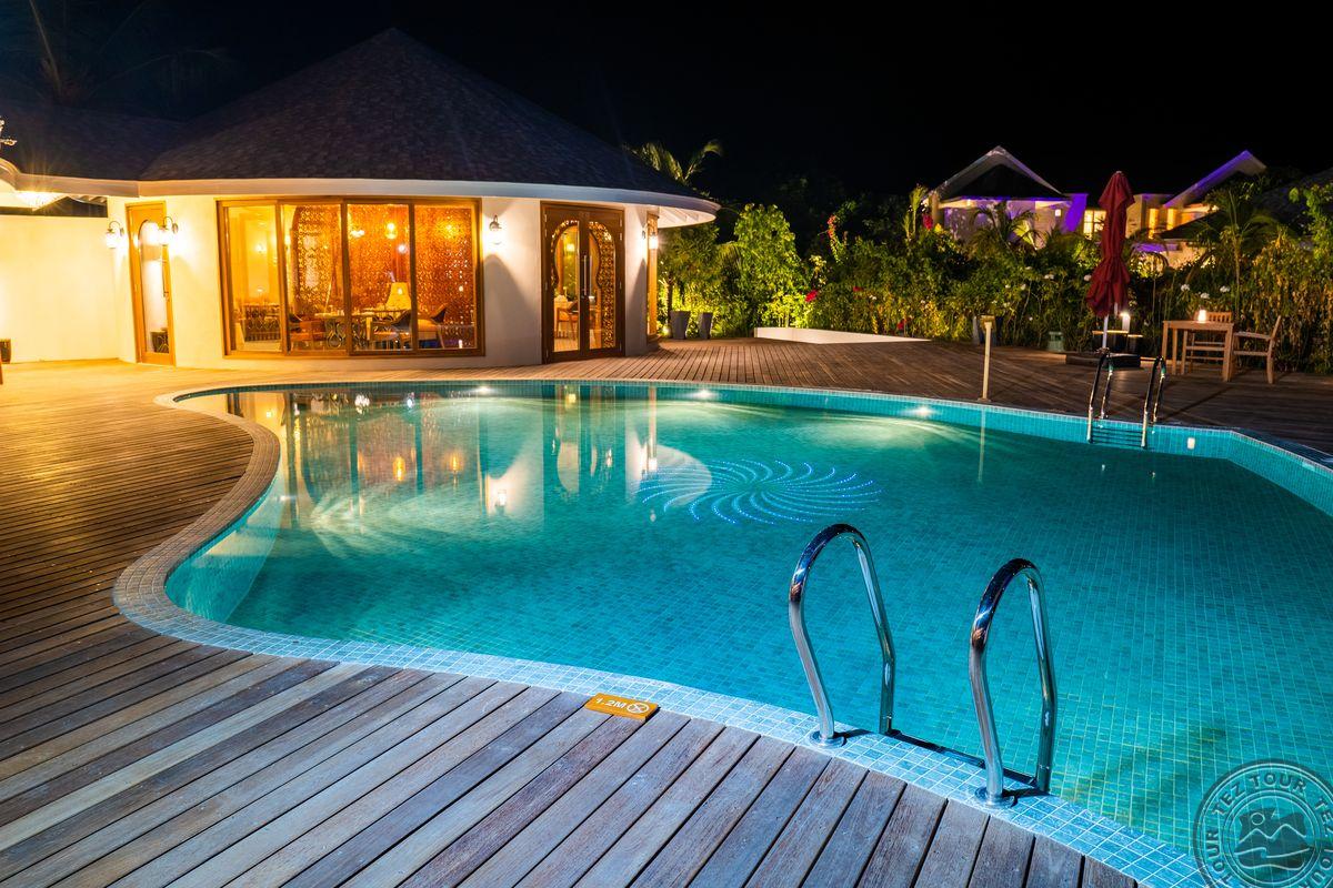 5 Sultan Beach Residence with Sunset Pool (4 BR) (двухэтажная вилла, гостиная, 4 спальни (в 3 спальнях кровати King, одна спальня с кроватями Twin), 4 ванные комнаты, парная, тренажерный зал, терраса с шезлонгами, душ на открытом воздухе, барбекю, бассейн с джакузи (99 м2), водная горка, беседка, комната для няни, прямой доступ на пляж, макс. 9 чел., 1100 м2).