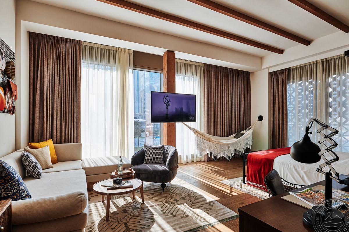 Artist Village Suite (4-8 этаж, спальня с зоной гостиной, двуспальная кровать, ванна и душ, макс. 2+2 или 3 чел., 72 м2);