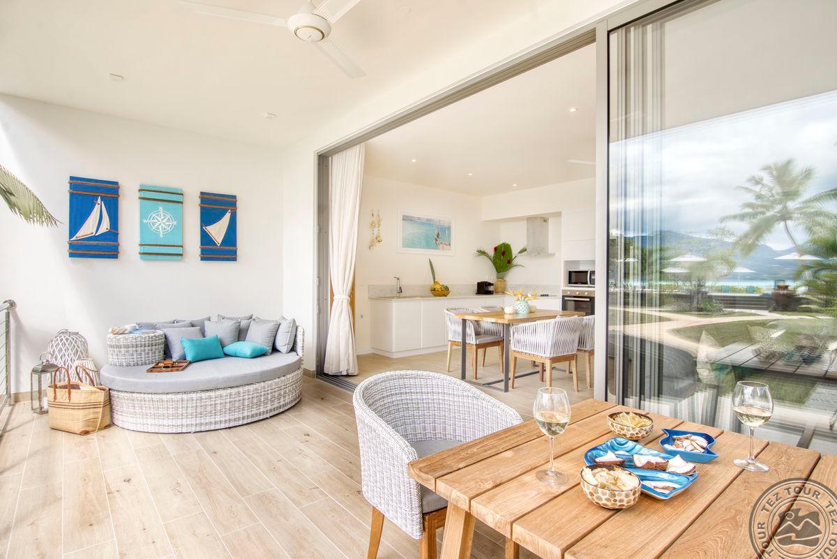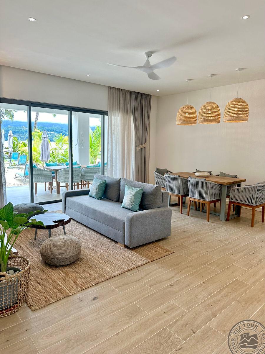 1 Two bedroom Villa Downstairs (вид на океан, на нижнем этаже, гостиная, оборудованная кухня, 2 спальни, прямой выход к пляжу, макс. 5 чел.);
