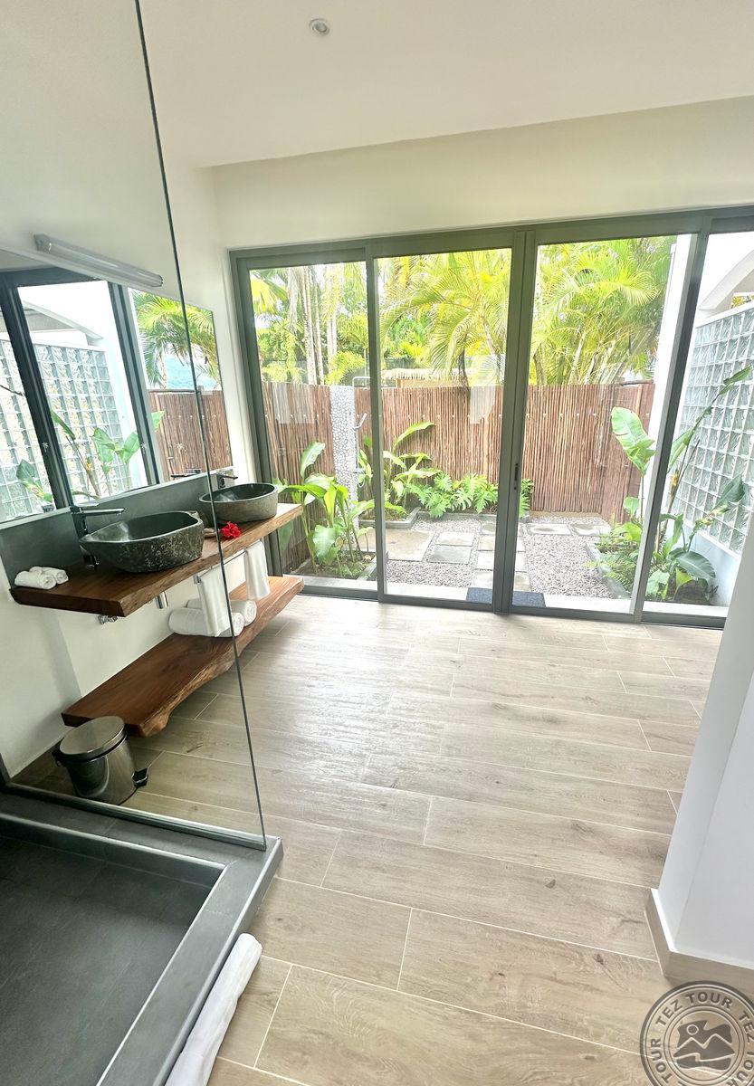 Отель на белопесчаном пляже напротив кораллового рифа. Виллы расположены в окружении тропического сада