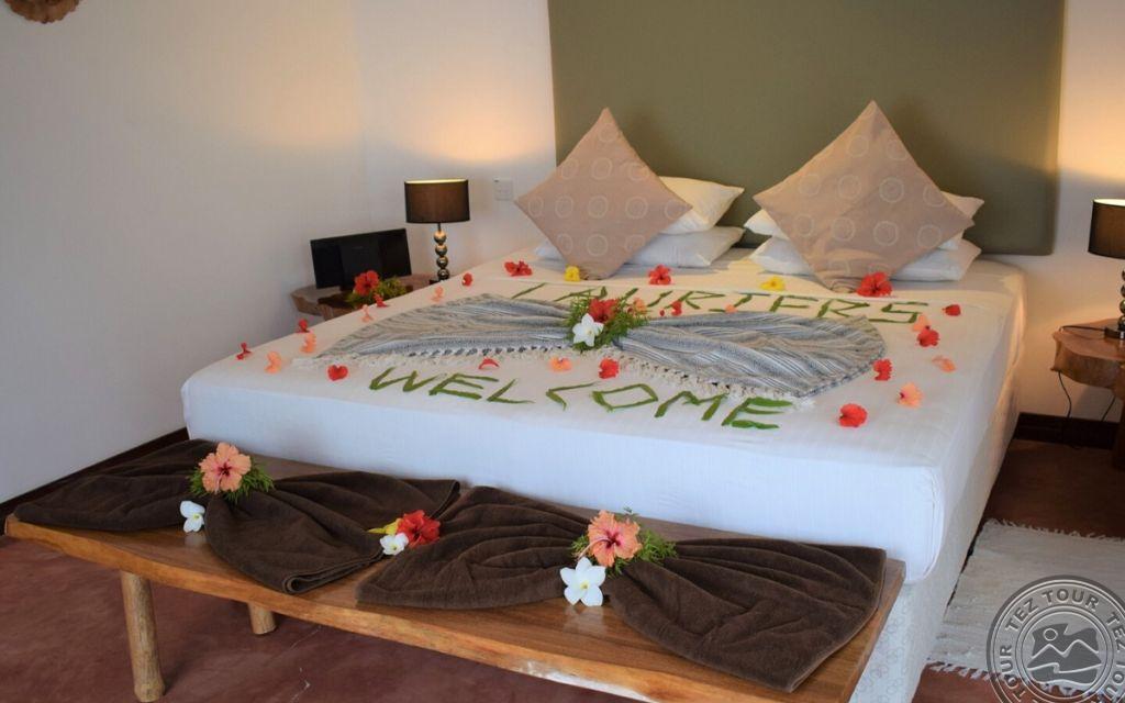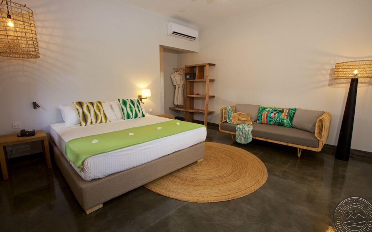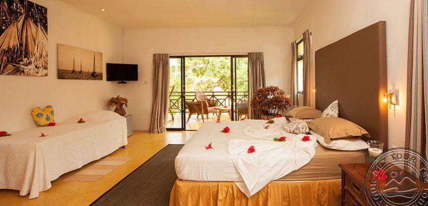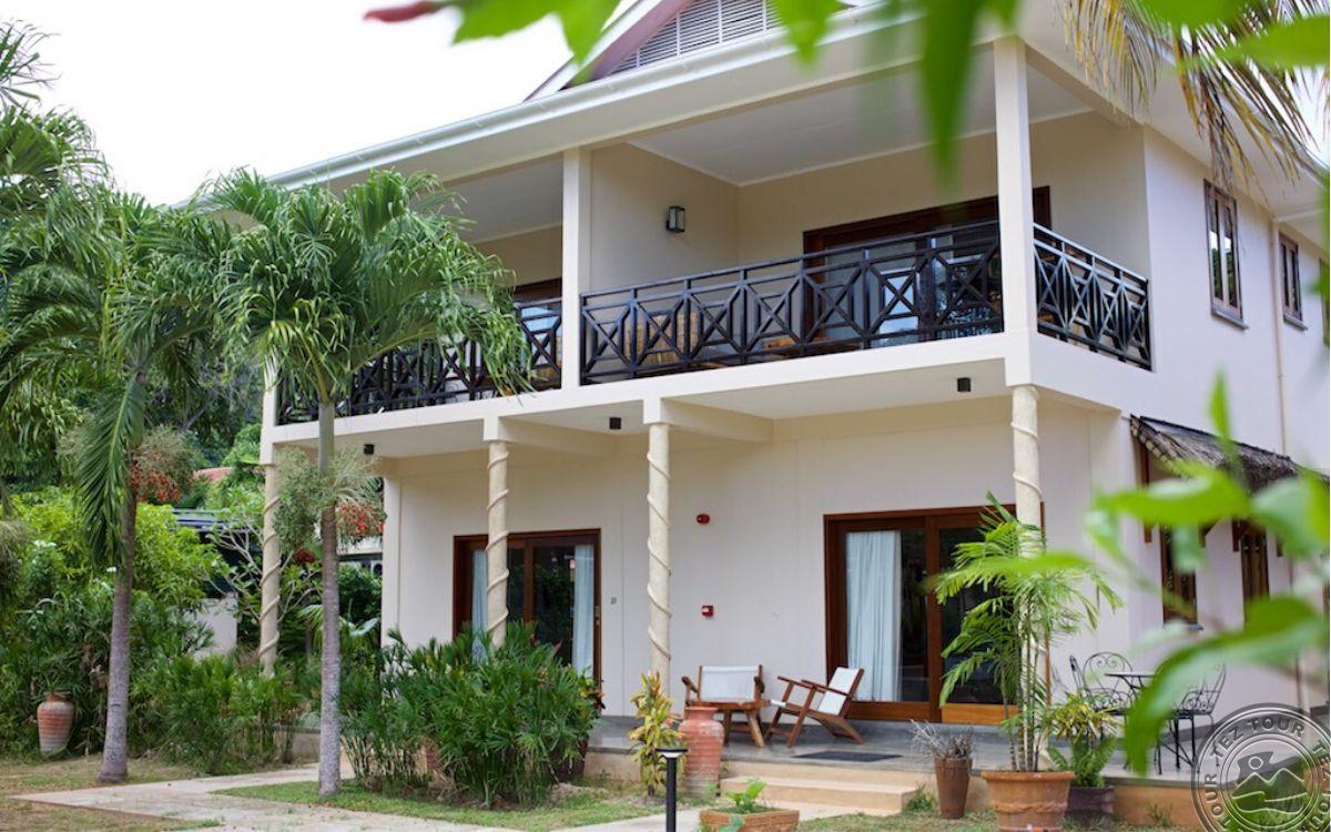 на северном побережье о. Праслин, в 45 мин езды от аэропорта Праслина, в 25 мин езды от причала Baie Ste Anne, в пешей доступности от пляжа Côte d’Or.