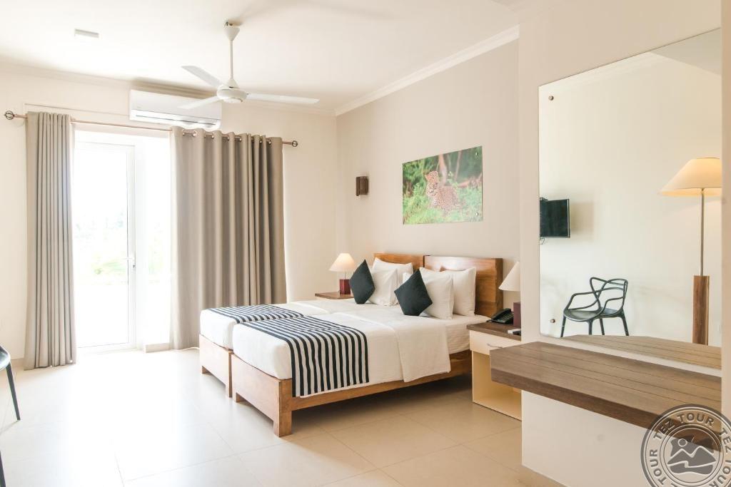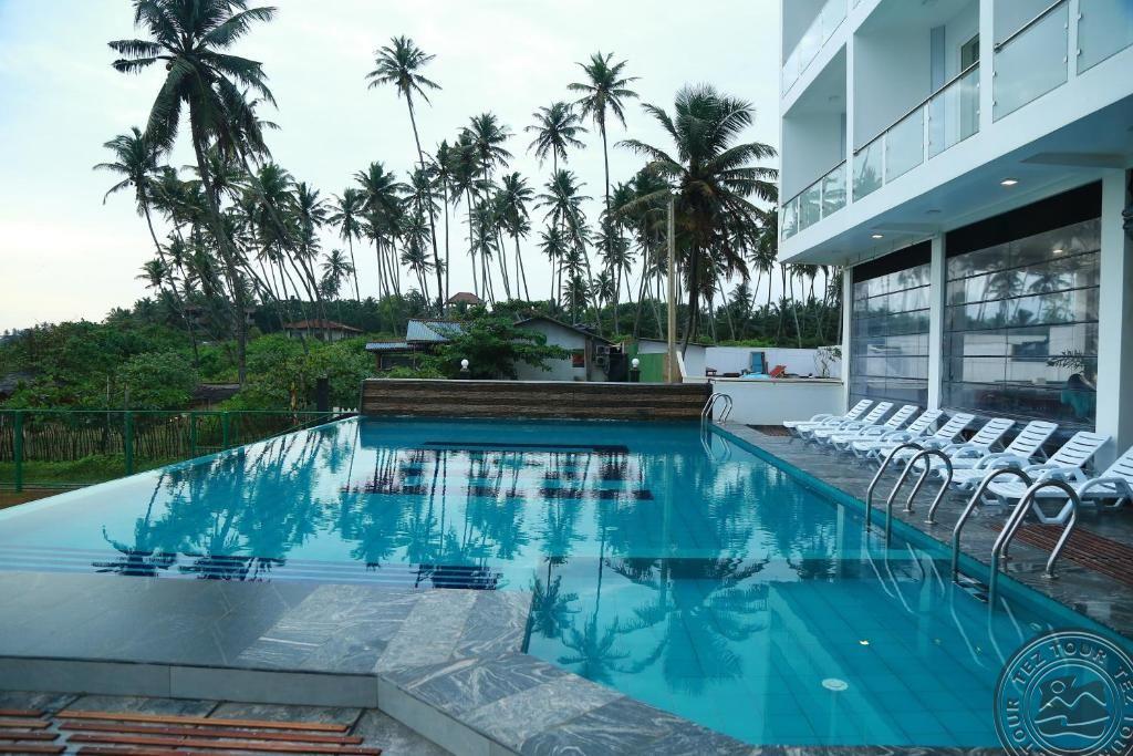 в местечке Велигама, в 79 км от аэропорта Маттала Раджапакса, в 173 км от аэропорта Коломбо, на берегу океана.