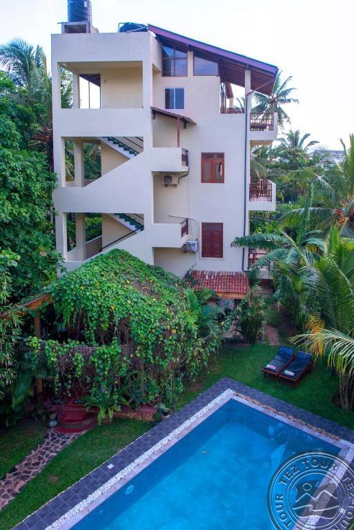 в местечке Хиккадува, в 142 км от аэропорта Коломбо, в 150 м от пляжа.