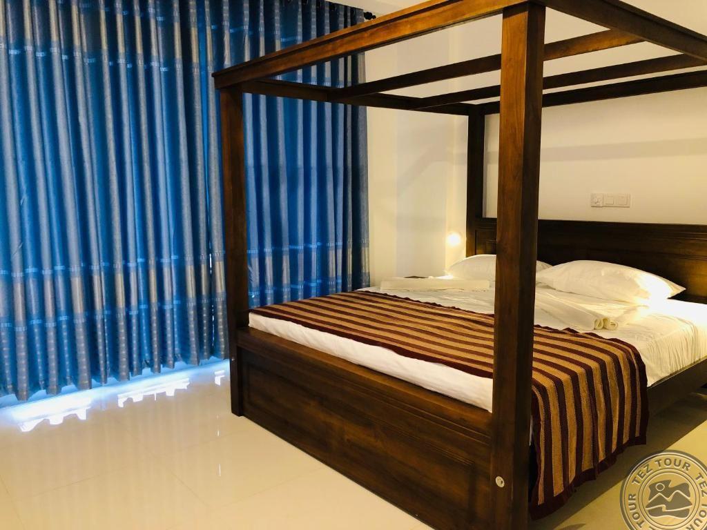 в городе Хиккадува, в 28 км от аэропорта Коггала, в 143 км от аэропорта Коломбо, на берегу океана на пляже Наригама.