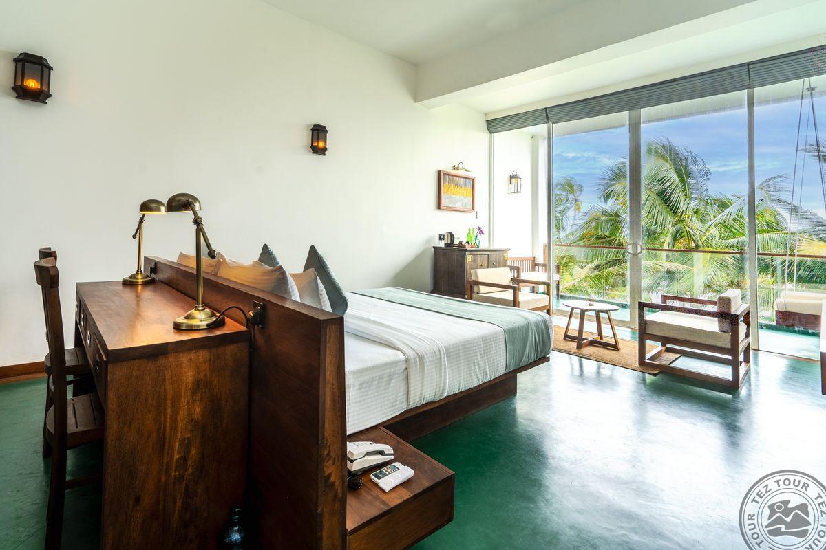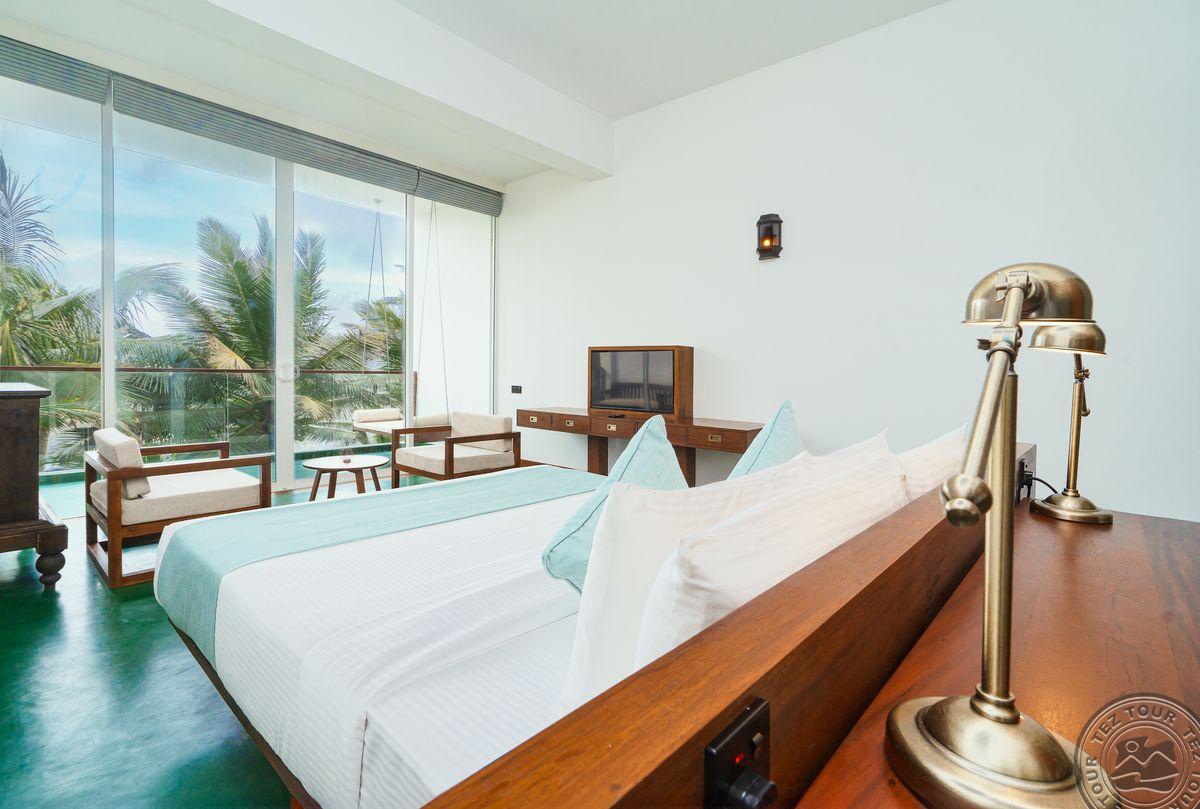 в местечке Индурува, в 113 км от аэропорта Коломбо, на берегу океана.