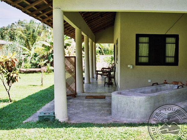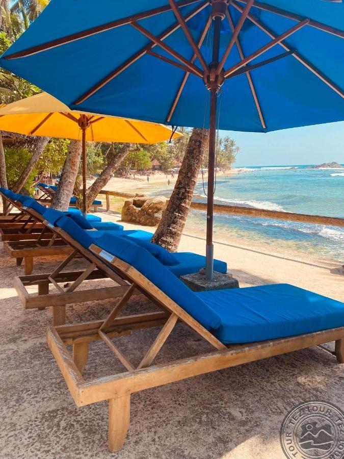 на южном побережье, в местечке Унаватуна, в 154 км от аэропорта Коломбо, на берегу океана.