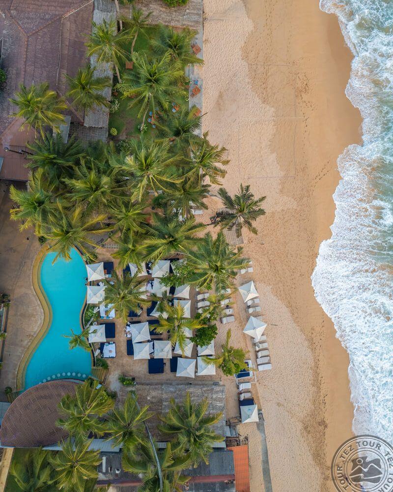 в местечке Унаватуна, в 154 км от аэропорта Коломбо, прямой доступ на пляж.