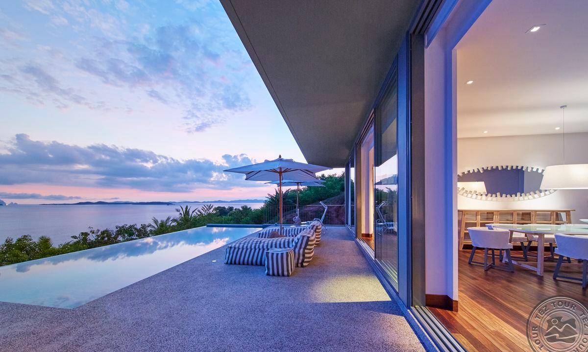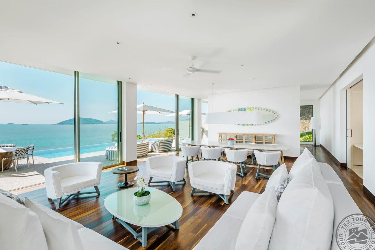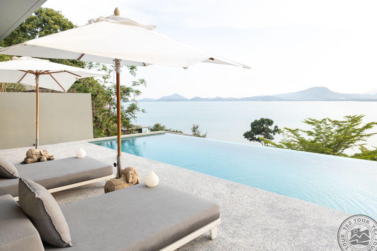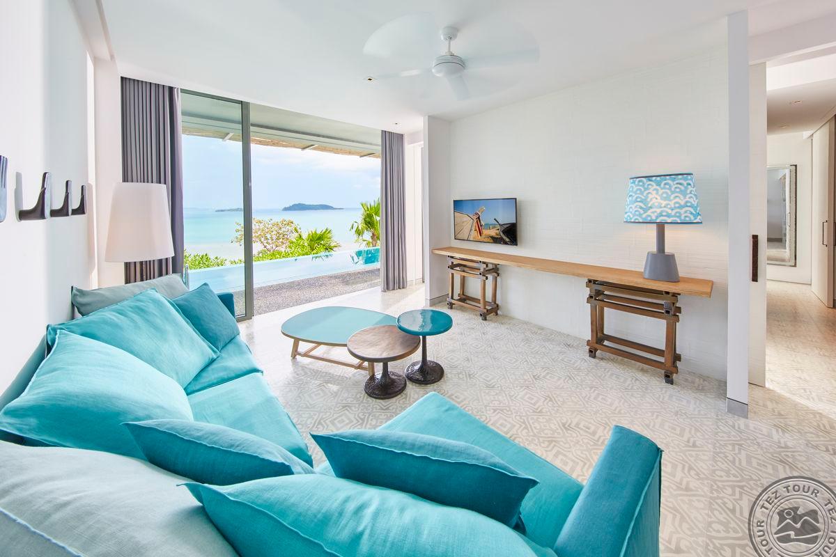11 двухэтажных Three Bedroom Andaman Pool Villa (вид на море, 2 гостиные, 3 спальни, 2 двуспальные и 2 односпальные кровати, 3 ванные комнаты, WC, кухня, комната для прислуги, терраса, бассейн, шезлонги, услуги батлера, привилегии, макс. 6+2 чел., общ. площадь 397-427 м2);