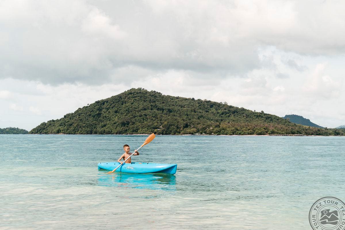 на восточном побережье Пхукета, в окончании мыса Cape Yamu, в 27 км от аэропорта Пхукета, на берегу моря.