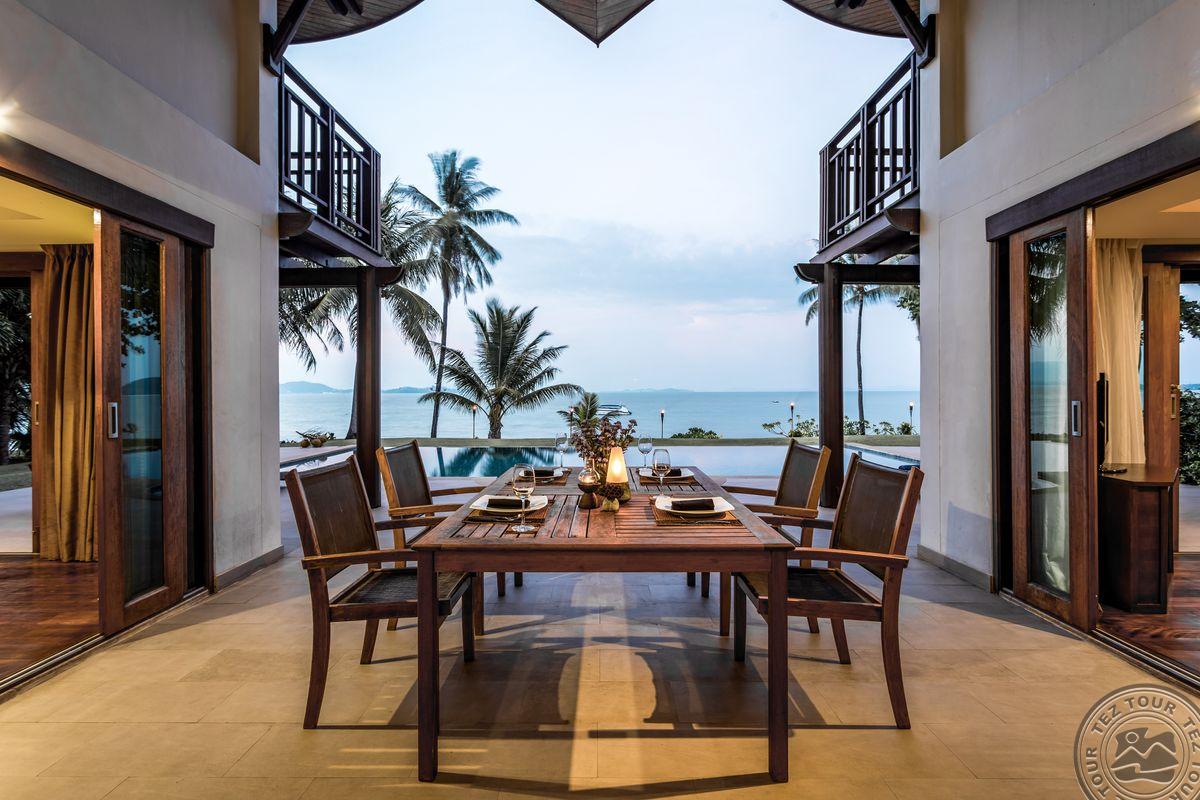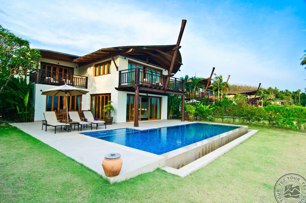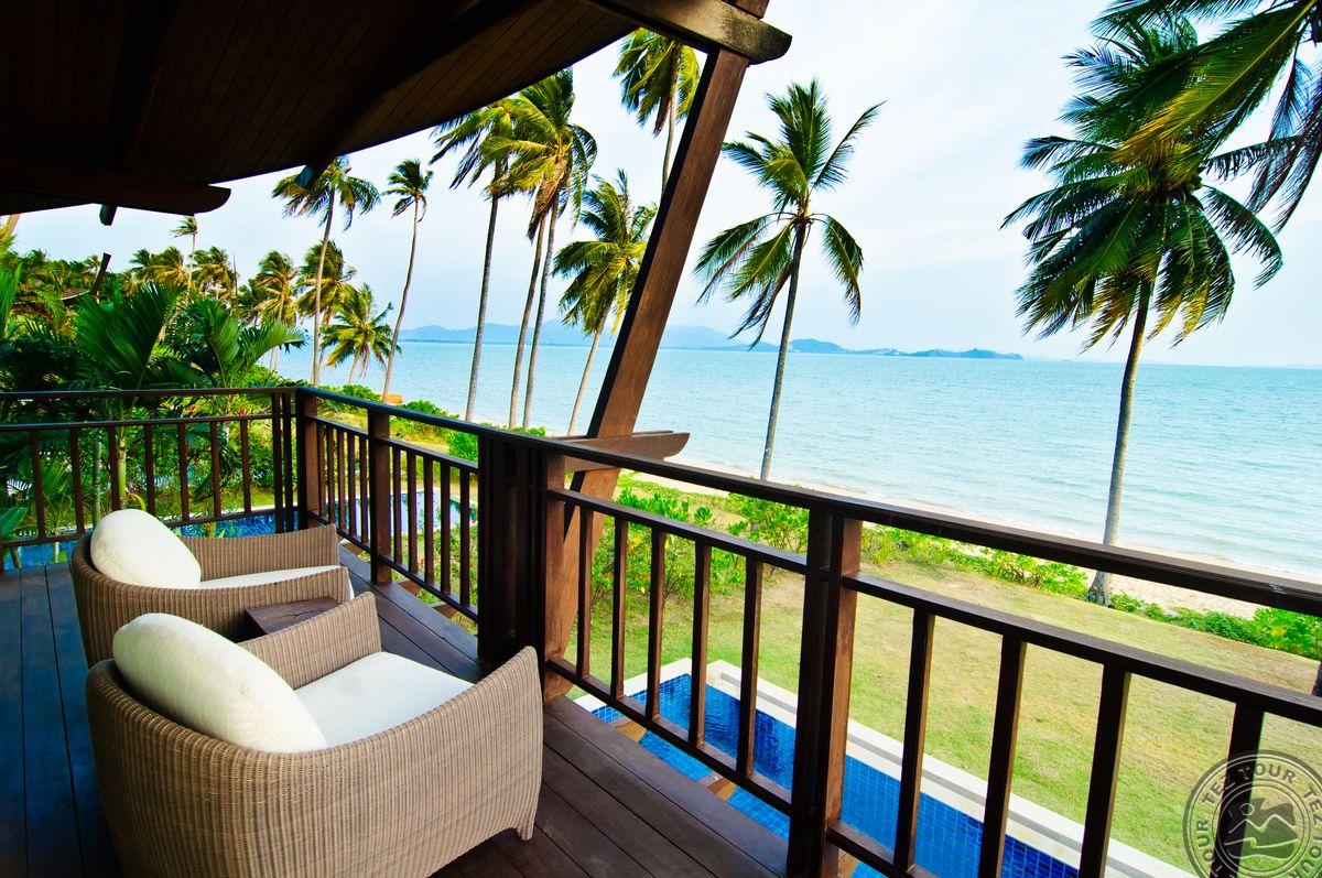 4 виллы 3 Bedroom Grand Beachfront Pool Villa (двухэтажная вилла, на линии пляжа, гостиная, оборудованная кухня, 3 спальни, ванные комнаты при каждой спальне, двуспальная или 2 односпальные кровати, обеденная зона и зона отдыха на открытом воздухе, бассейн 10*4 м, терраса с шезлонгами, макс. 7 чел., 254 м2);