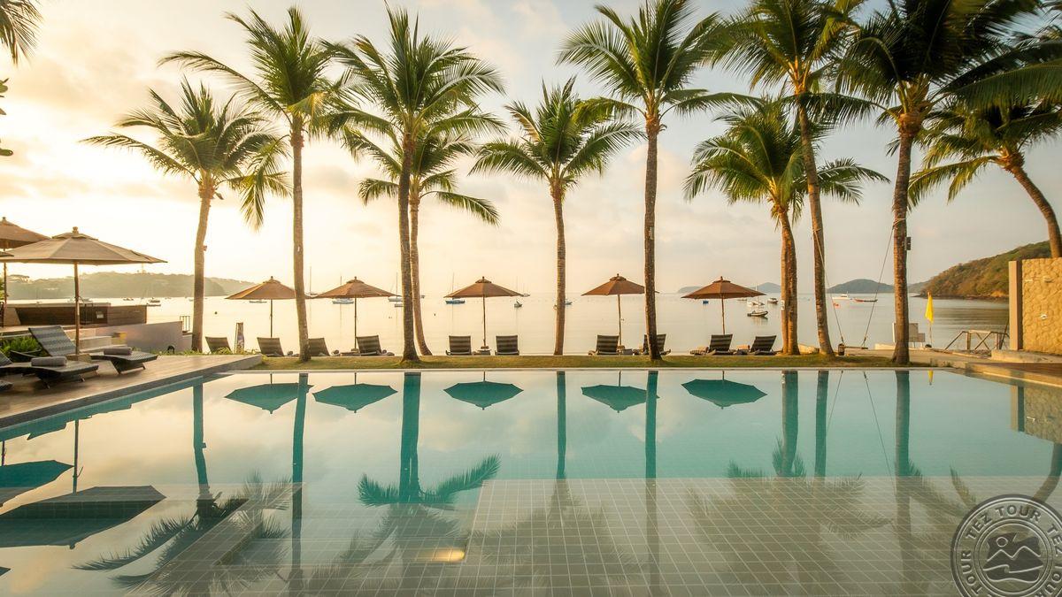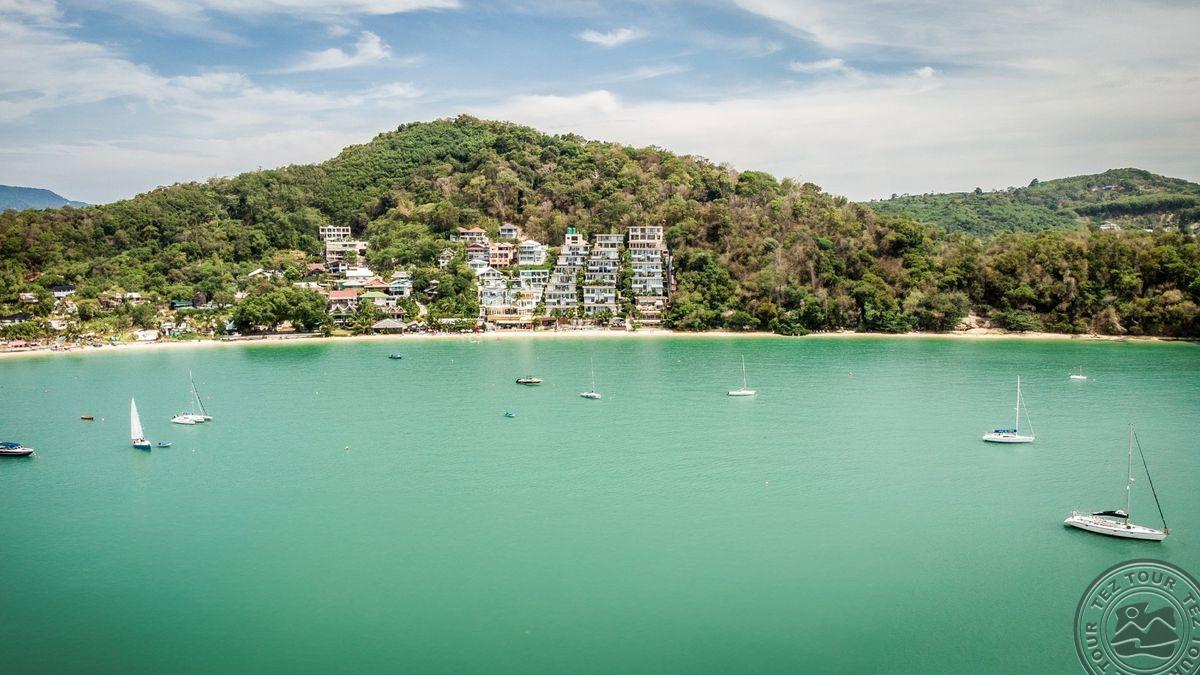 в заливе Ао-Йон, в 1 часе езды от аэропорта Пхукета, в 15 мин от г. Пхукет, на берегу моря.