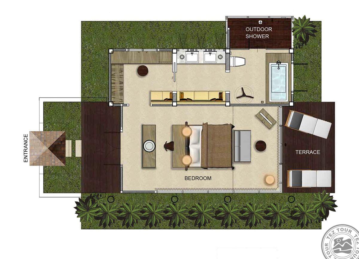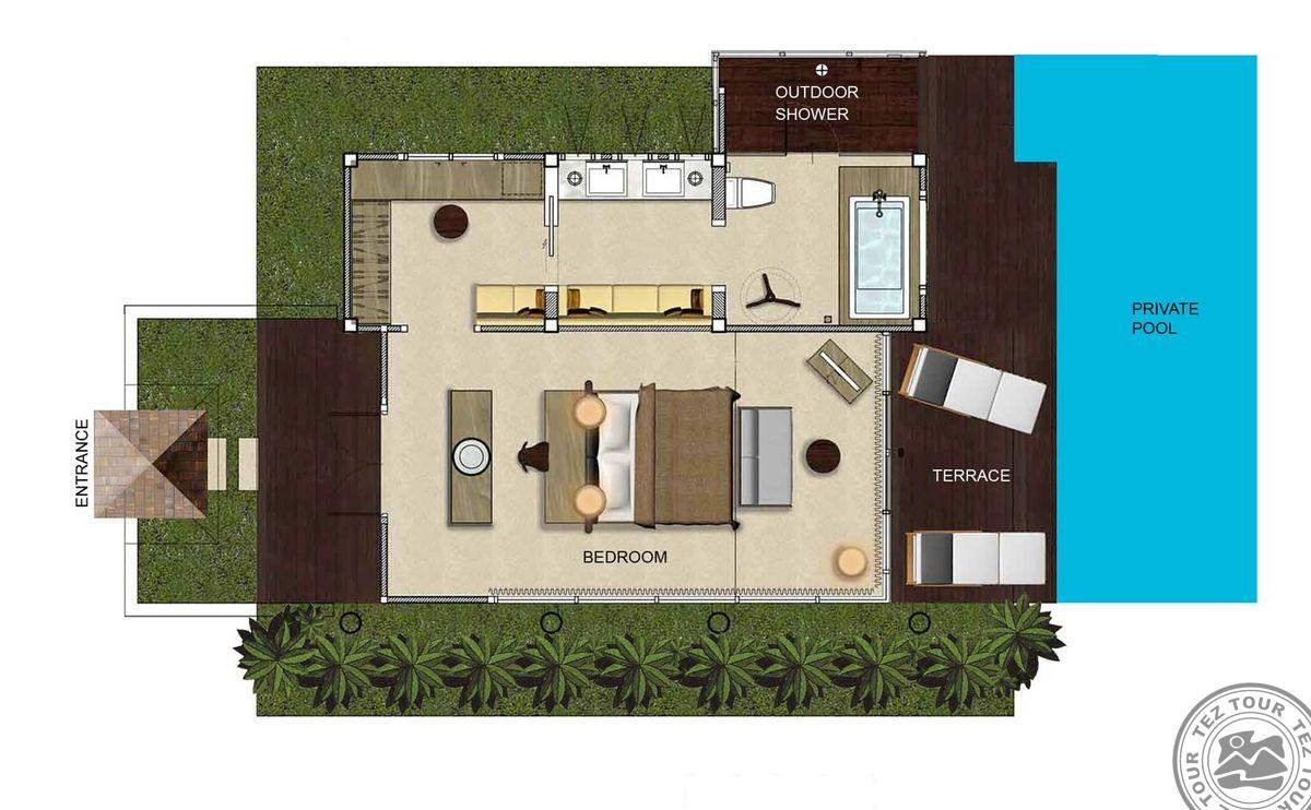 4 Vijitt Pool Villa (у пляжа, гостиная, спальня, двуспальная кровать, ванная комната с ванной, душ на открытом воздухе, гостевой туалет, терраса, сад с шезлонгами, бассейн с джакузи 11 м, макс. 2 чел., 162 м2);