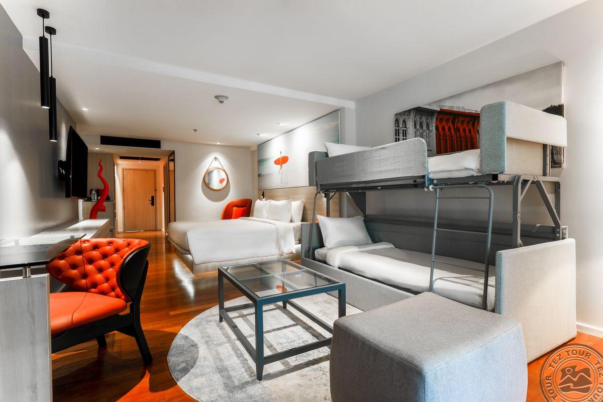 Первый в Таиланде отель Radisson RED. Radisson RED Phuket Patong Beach - это не просто отель, в котором можно остановиться. Это центр общения, где процветает креативность и заводят новые знакомства. Эффектный современный дизайн, оживленные общественные зоны и гибкие пространства для совместной работы, в том числе рабочие места общего пользования и уединенные кабинки, дополняются сверхбыстрым Wi-Fi, чтобы сохранит динамичный ритм. Вечеринки на крыше, живые музыкальные выступления и игривая атмосфера.