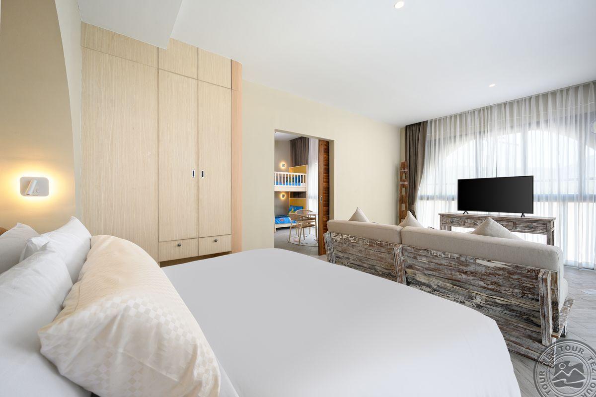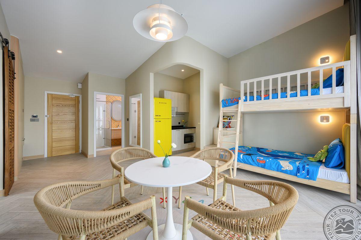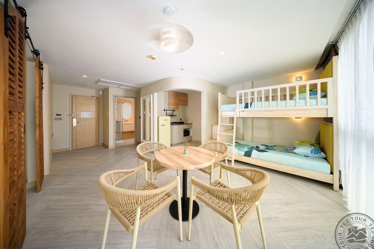 2 Family Suite (гостиная и спальня, двуспальная и двухъярусная кровати, мини-кухня, ванная комната с ванной и душем, без балкона, макс. 3+2 чел., 57 м2).
