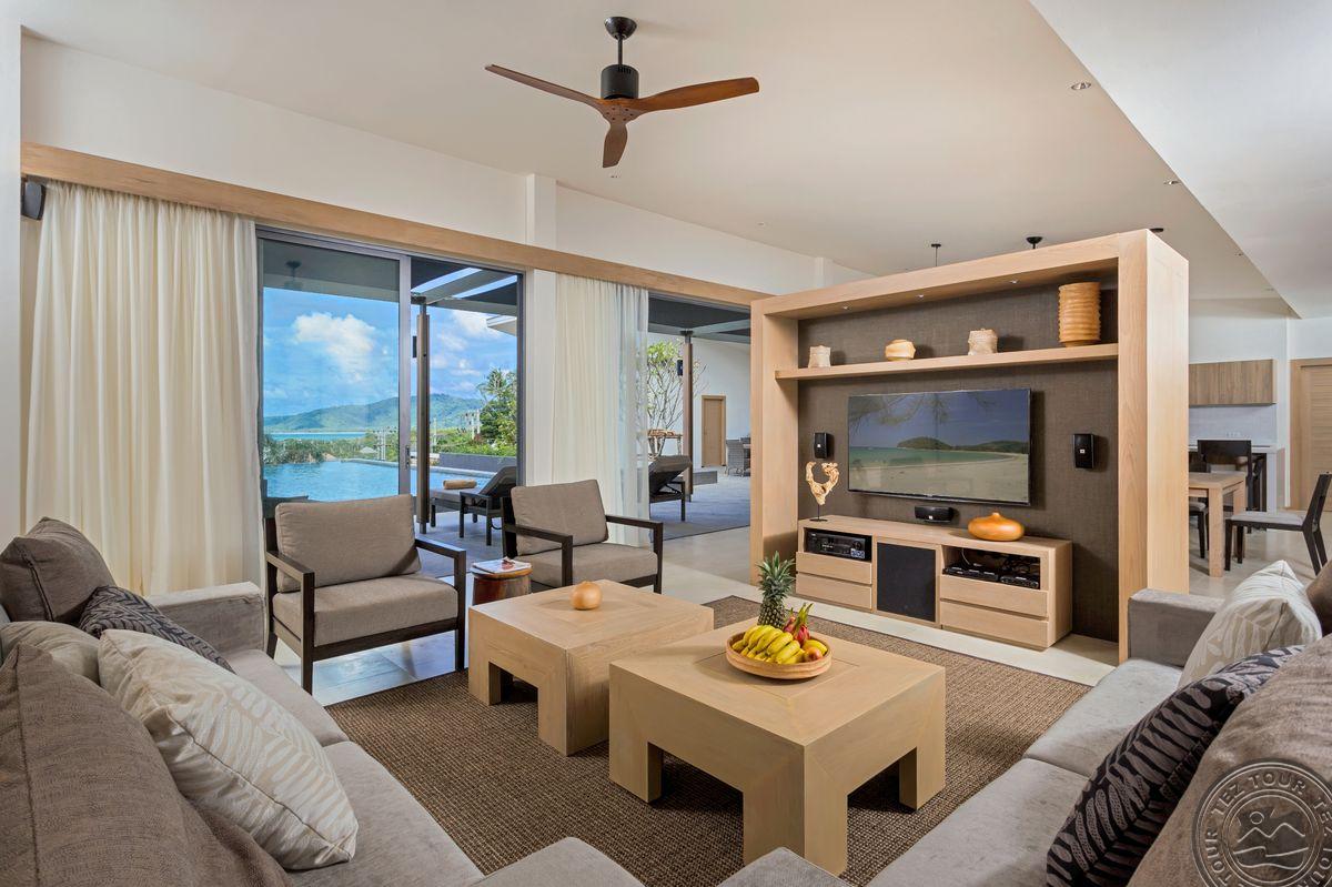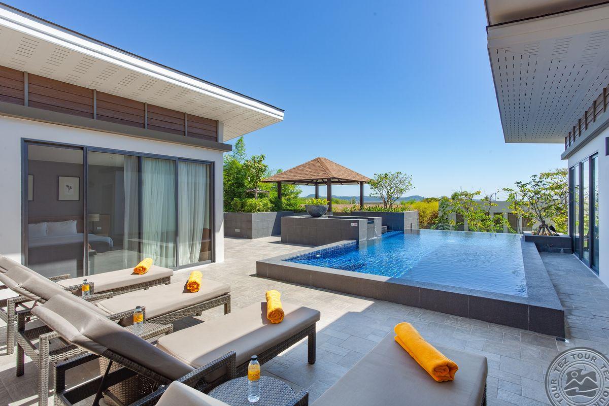 4 Bedrooms Private Pool Villa with Partial Sea View (частичный вид на море, гостиная, домашний кинотеатр, оборудованная кухня, 4 спальни: 3 спальни на основной этаже, 1 спальня на нижнем этаже, 4 ванные комнаты, зоны для отдыха, бассейн 8м, прачечная со стиральной машиной, комната для прислуги, макс. 10 чел., 350 м2 жилой зоны);