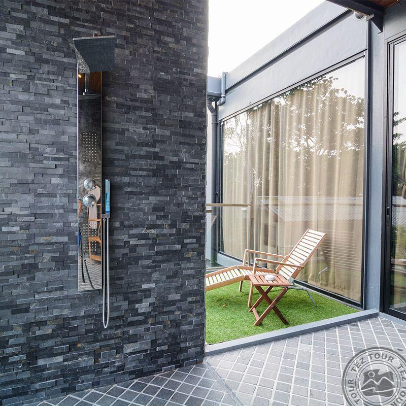 Отель состоит из трехэтажных зданий в современном стиле, расположен на самом берегу моря. Рекомендован для молодежного и романтического отдыха.