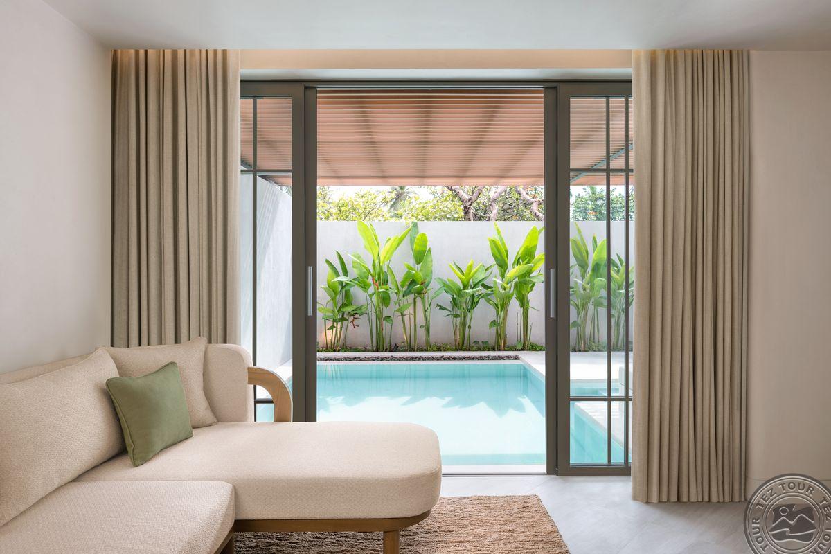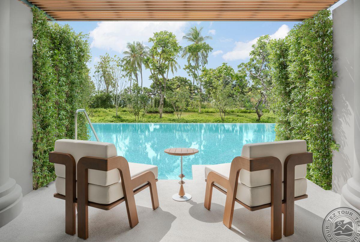 Deluxe Pool Access (вид на сад, двуспальная кровать, прямой доступ в бассейн, макс. 2+2 или 3 чел., внутри 40 м2, снаружи 8 м2);