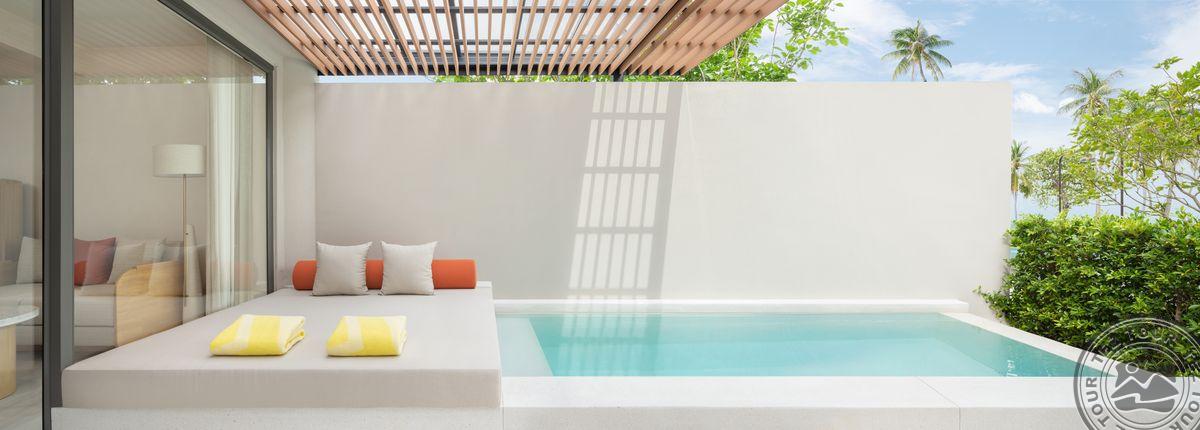 Reserve Pool Suite (вид на сад, однокомнатный номер, двуспальная кровать, индивидуальный бассейн, макс. 2+2 или 3 чел. внутри 40 м2, снаружи 27м2).