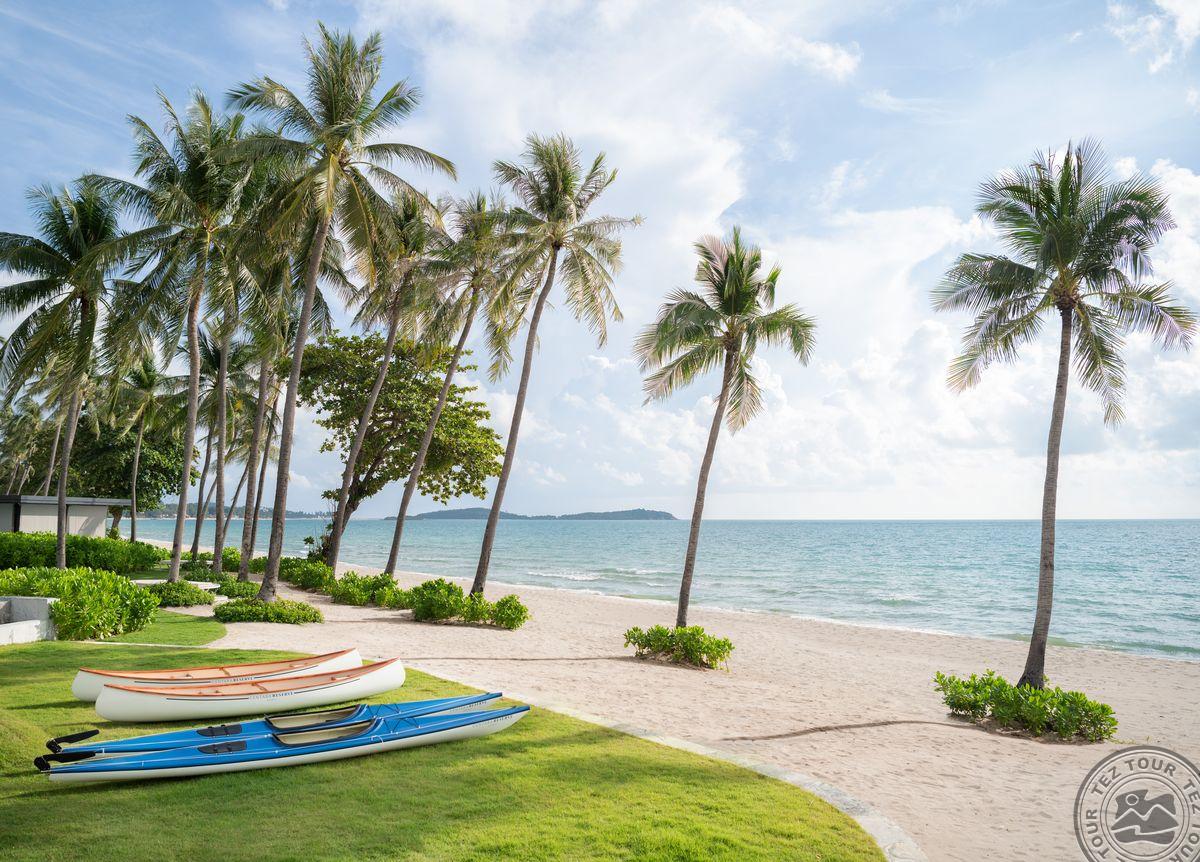 на пляже Чавенг, в 4,9 км от аэропорта, на берегу моря.