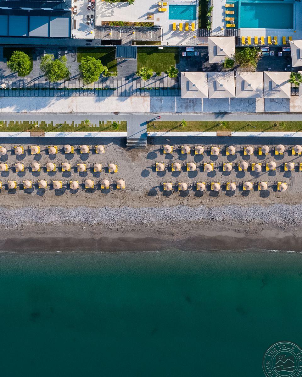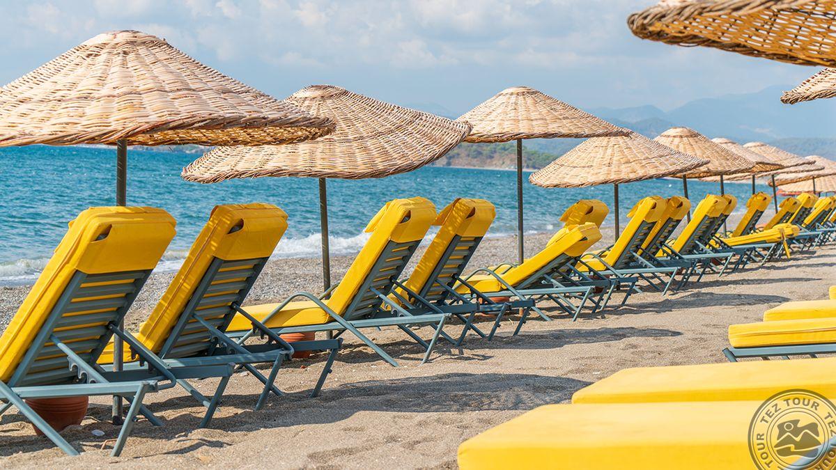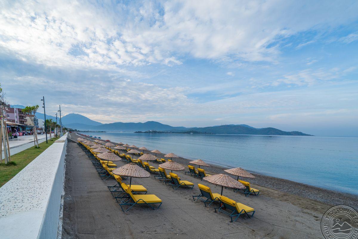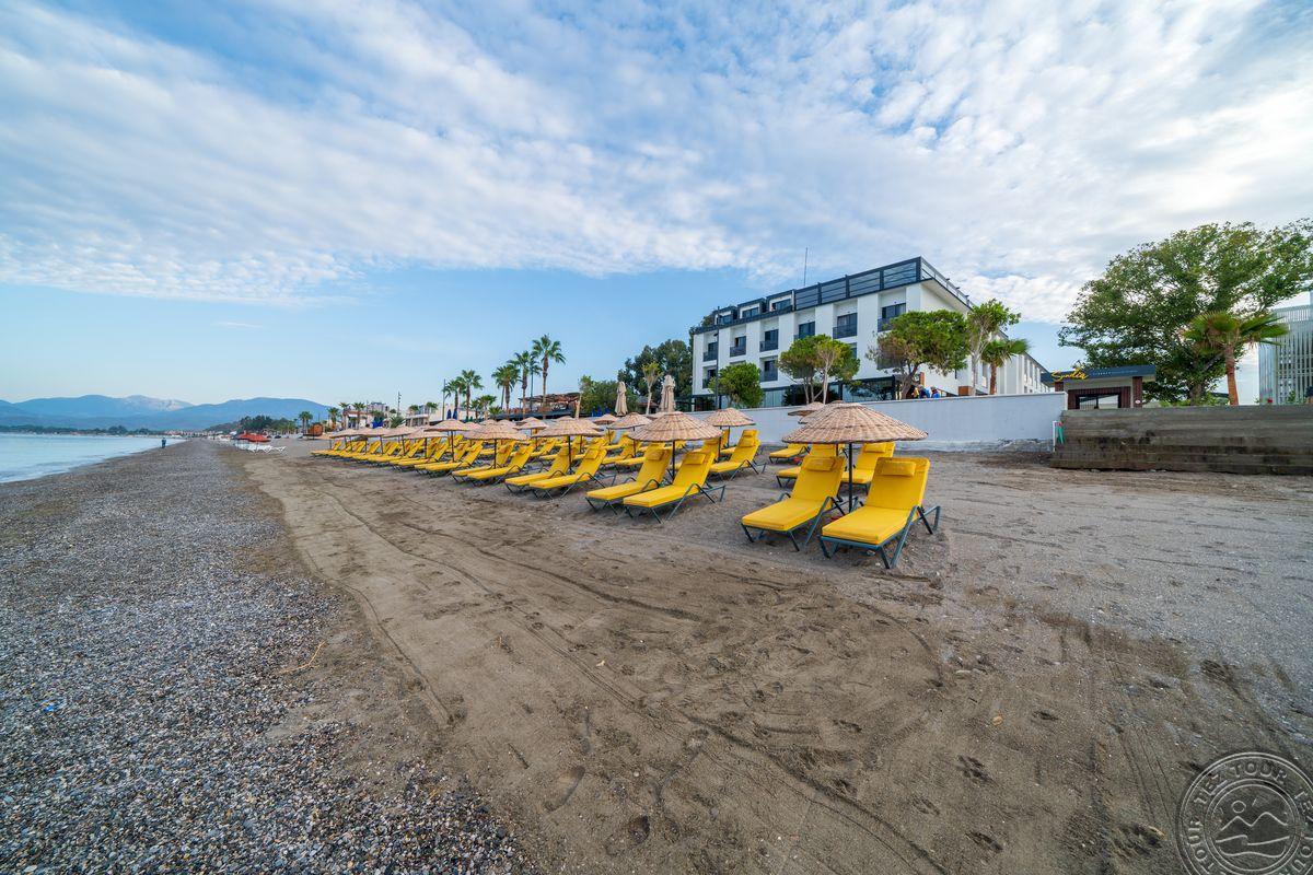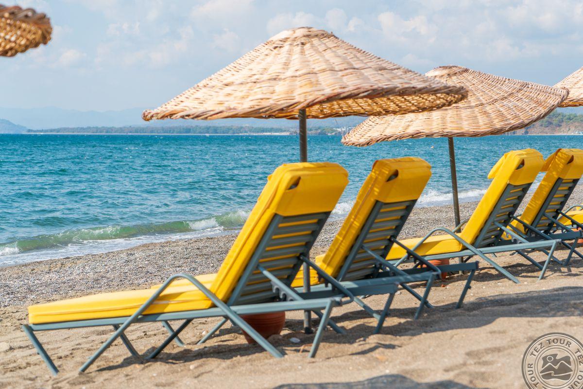 в 43 км от аэропорта г. Даламан, в 215 км от аэропорта Милас Бодрума, в 7 км от г. Фетхие, через дорогу от моря.