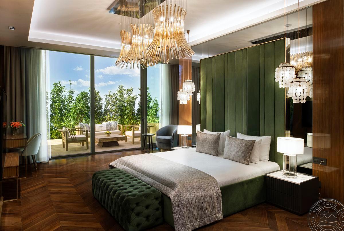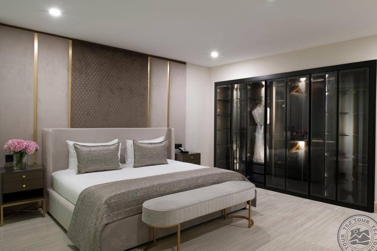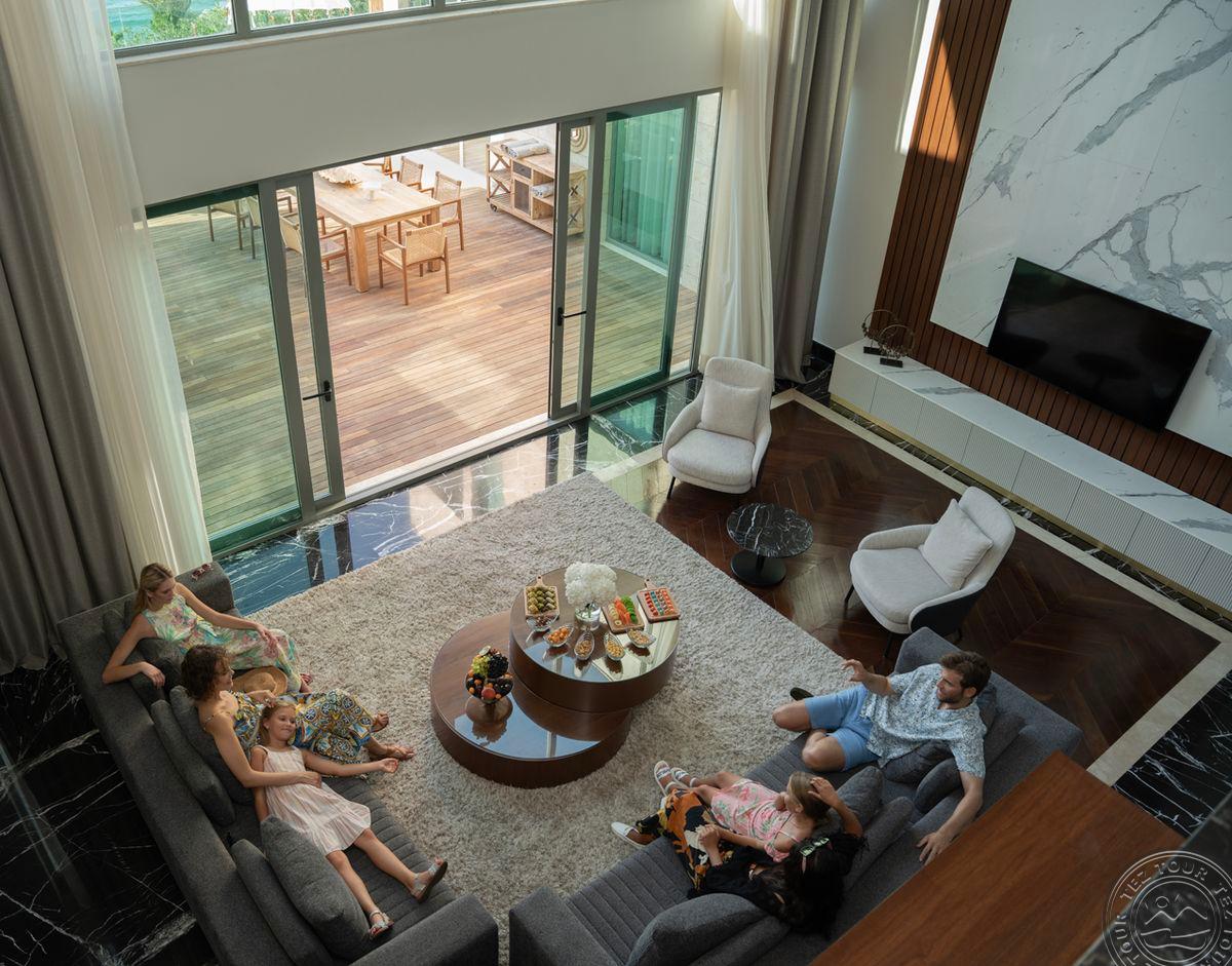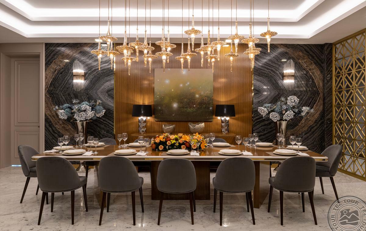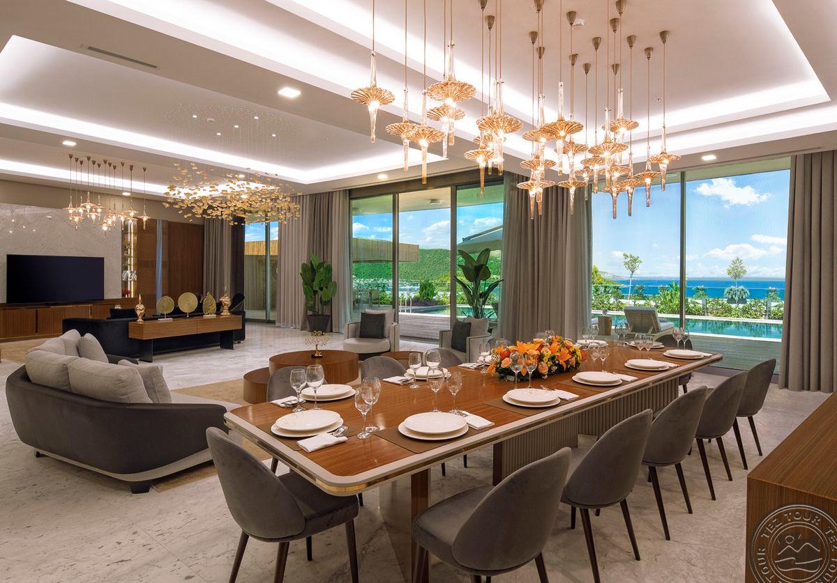 3 двухэтажных Presidential Villa (вид на море, на первом этаже: индивидуальный бассейн, терраса с шезлонгами, гостиная, 2 спальни с ванными комнатами и гардеробными, кухня (микроволновая печь, кухонное оборудование (по запросу), посудомоечная машина); на втором этаже: 4 спальни с дверью и c ванными комнатами, балкон; отдельная зона на VIP пляже; макс. 12+1 чел., 800 м2, Vip-сервис).