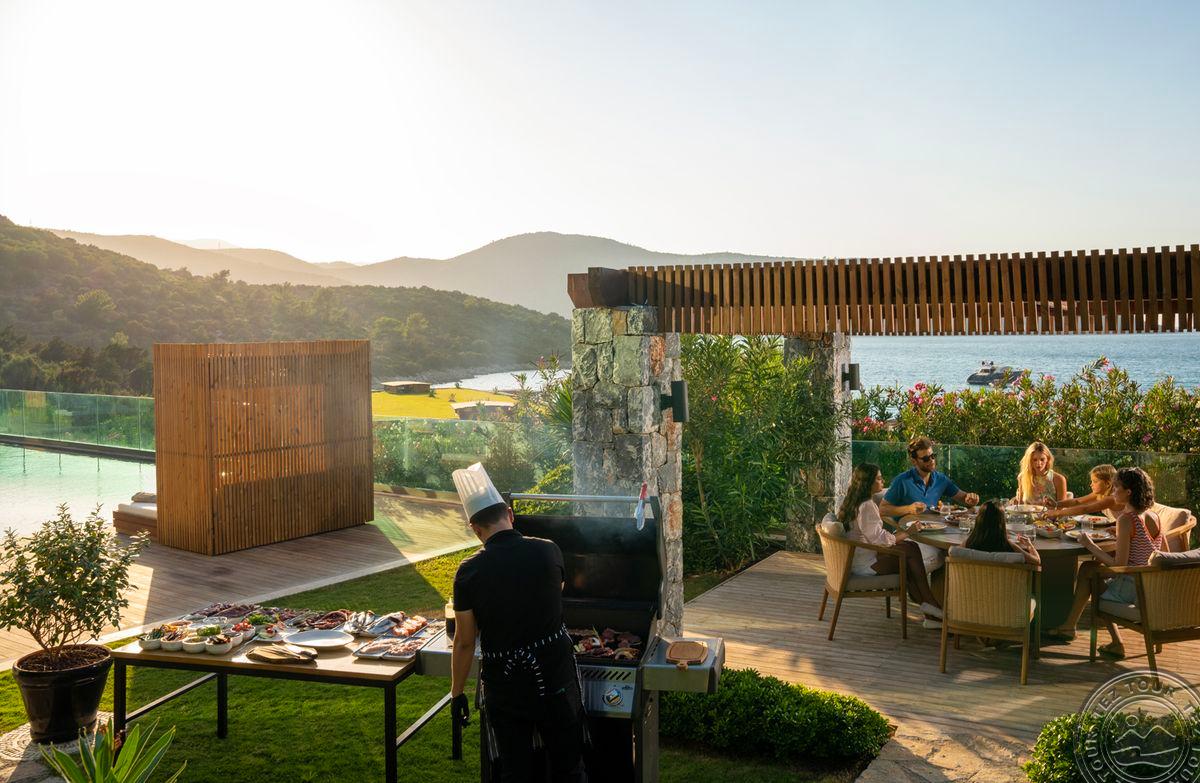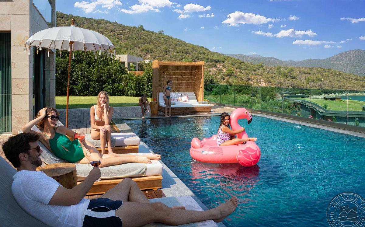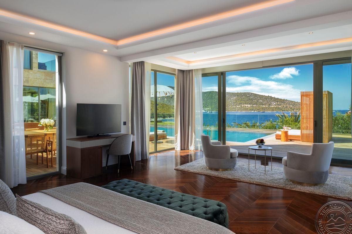 21 двухэтажных Afrodite Villa (вид на море, на первом этаже: индивидуальный бассейн, терраса с шезлонгами, гостиная, столовая зона, мини-кухня (микроволновая печь, кухонное оборудование (по запросу), посудомоечная машина), туалет; на втором этаже: 2 спальни с дверью, 2 ванные комнаты, балкон; макс. 5+1 чел., 190 м2, Vip-сервис);