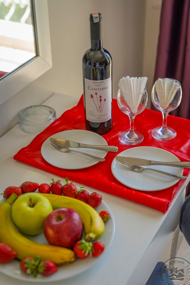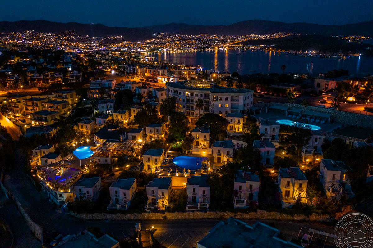 в 40 км от аэропорта и в 4 км от центра Бодрума, в 2 км от центра местечка Гюмбет, в 600 м от городского пляжа.