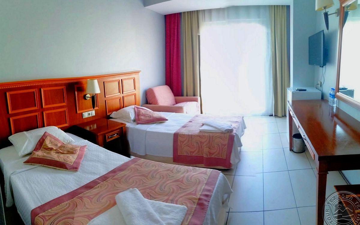в 45 км от аэропорта г. Анталья, в г. Кемер, в 950 м через дорогу от пляжа, в 3,4 км от собственного пляжа.