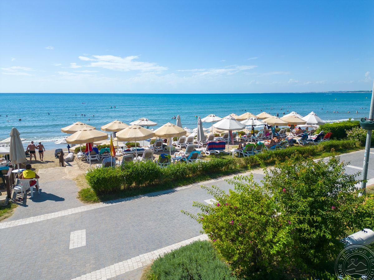 в 65 км от аэропорта г. Анталья, в 500 м от г. Сиде, в 20 метрах от моря.