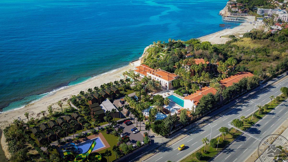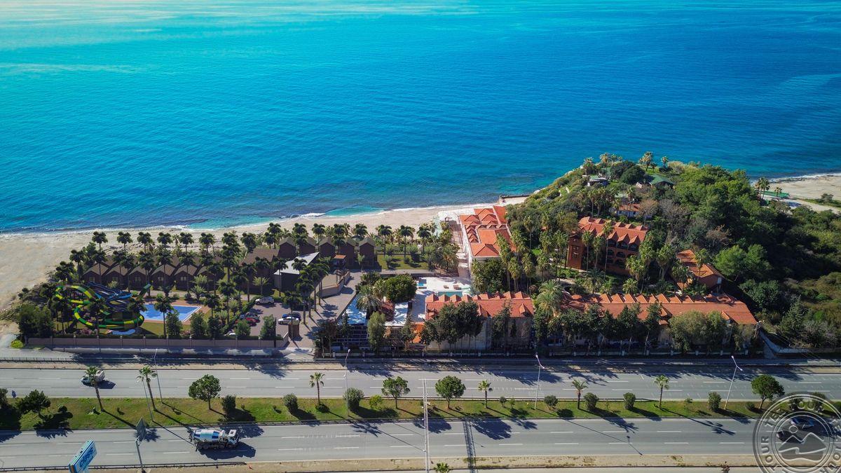 в 116 км от аэропорта г. Анталья, в 53 км от аэропорта Газипаша г. Алания, в 125 км от центра г. Анталья, в 10 км от центра г.Алании, на берегу моря.