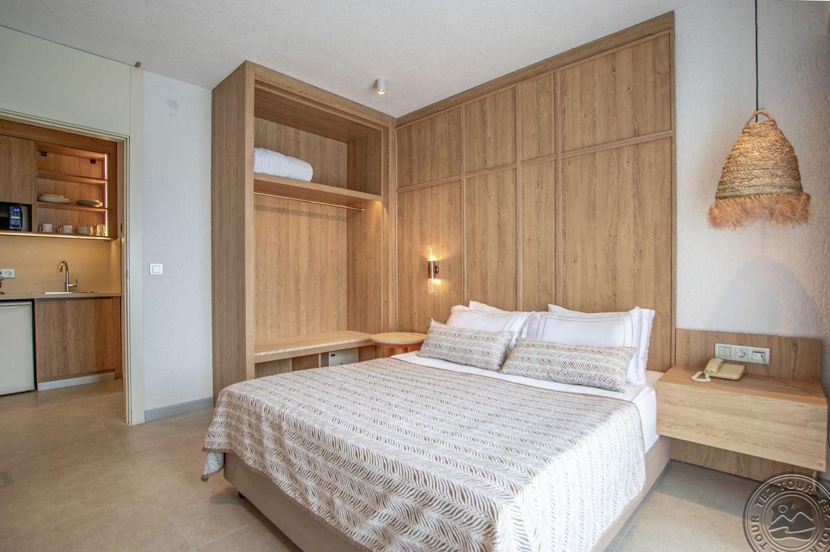 в 35 км от аэропорта Бодрума и в 1 км от центра г. Бодрум, в поселке Гюмбет, в 100 м от городского пляжа.