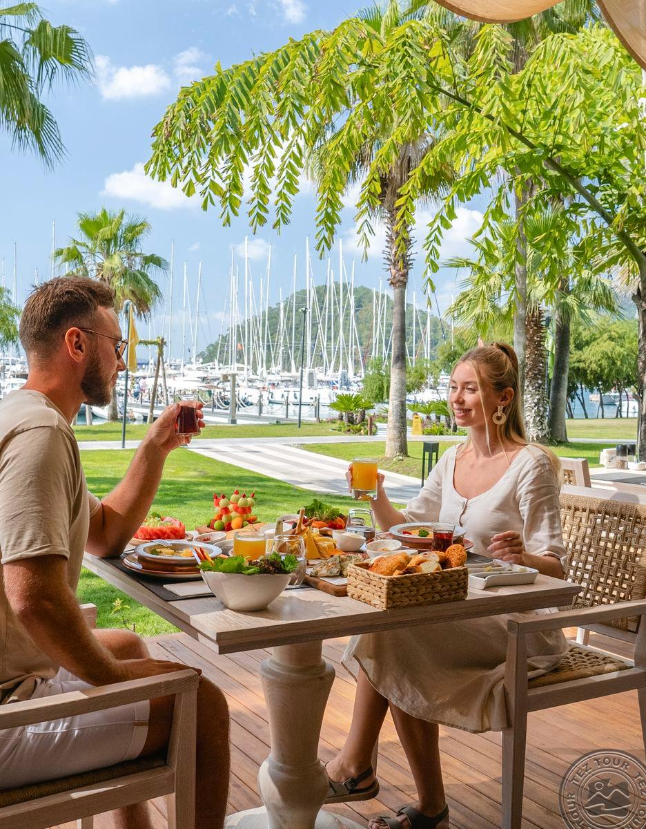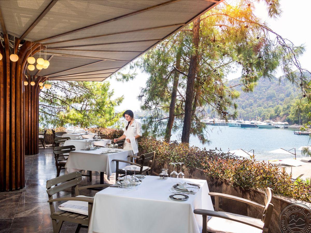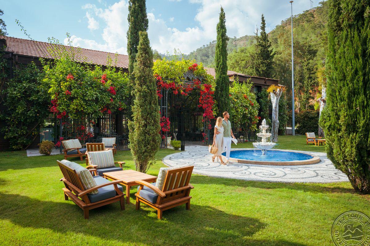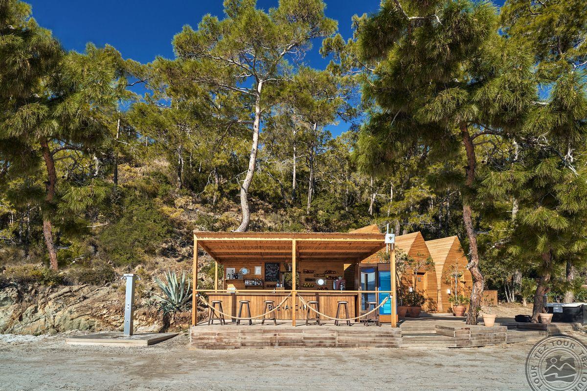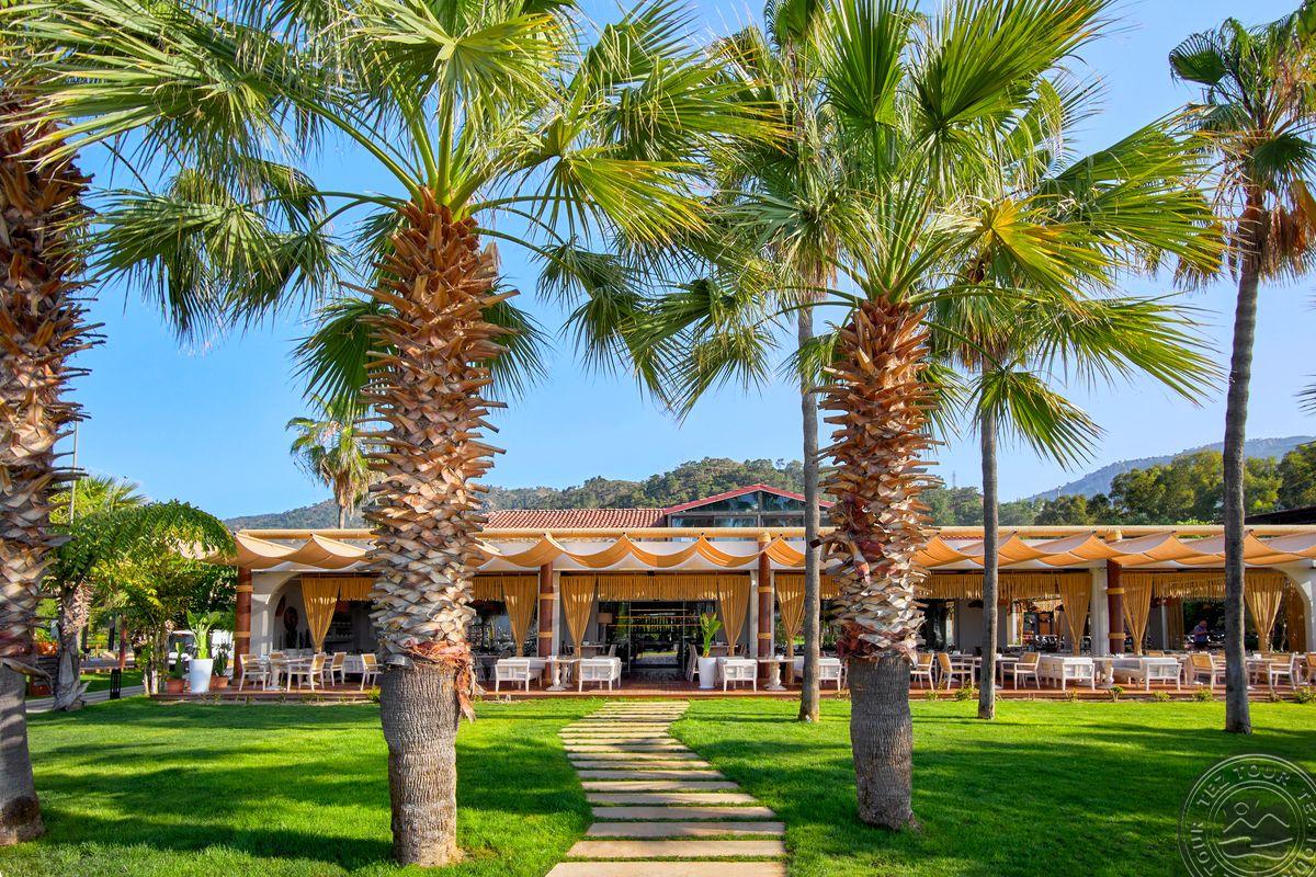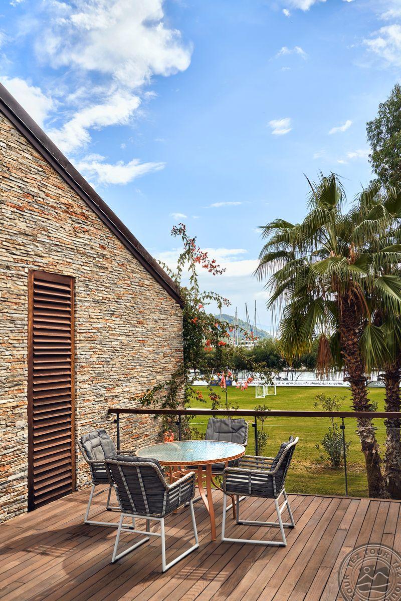 в 20 км от аэропорта г. Даламан, в 28 км от г. Фетхие, в поселке Гёчек, на берегу моря.