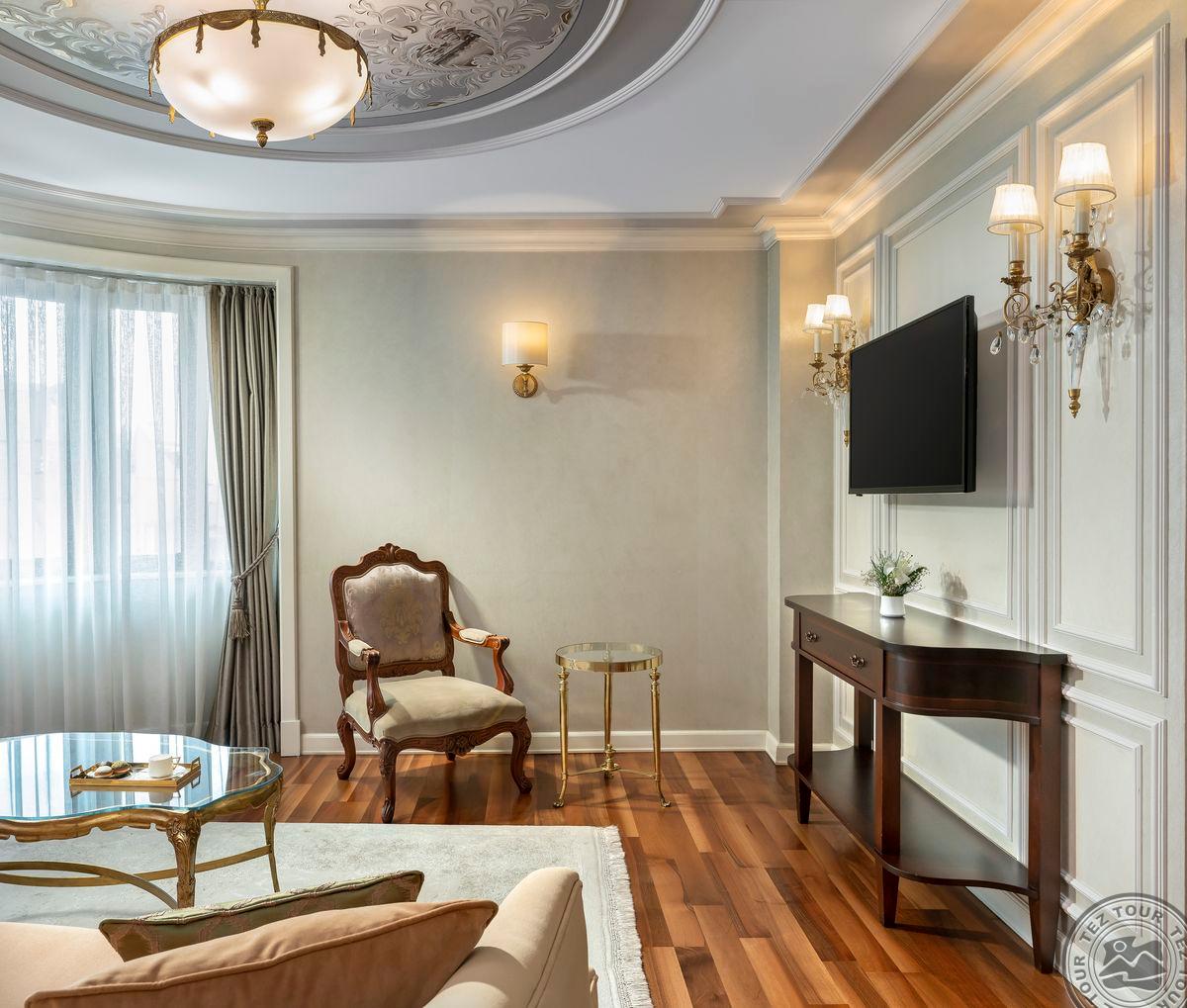 11 двухкомнатных Junior Suite (вид на Перу/город или бухту Золотой Рог, гостиная, спальня с дверью, двуспальная кровать, макс. 3 чел., 40-60 м2),