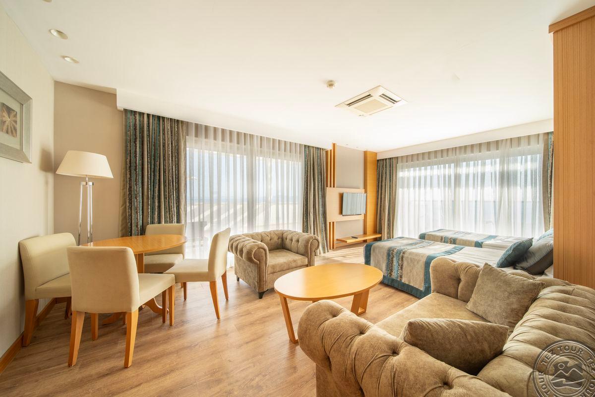 24 однокомнатных Deluxe Junior Suite (вид на море и бассейн, двуспальная и 1 односпальная кровати, макс. 3+1 чел., 42 м2);