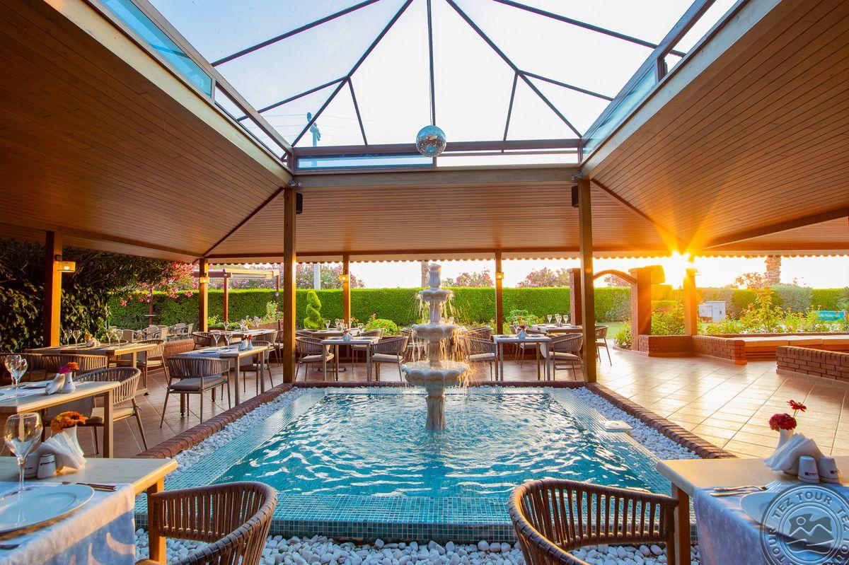Большая и очень зеленая территория с множеством тихих уголков для отдыха. Есть несколько бассейнов и водные горки. Рекомендуем для семейного отдыха с детьми.