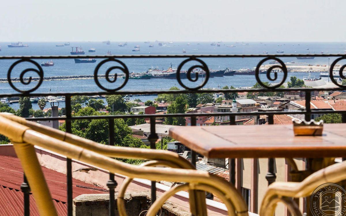 Отель с панорамной террасой на крыше с видом на Стамбул.