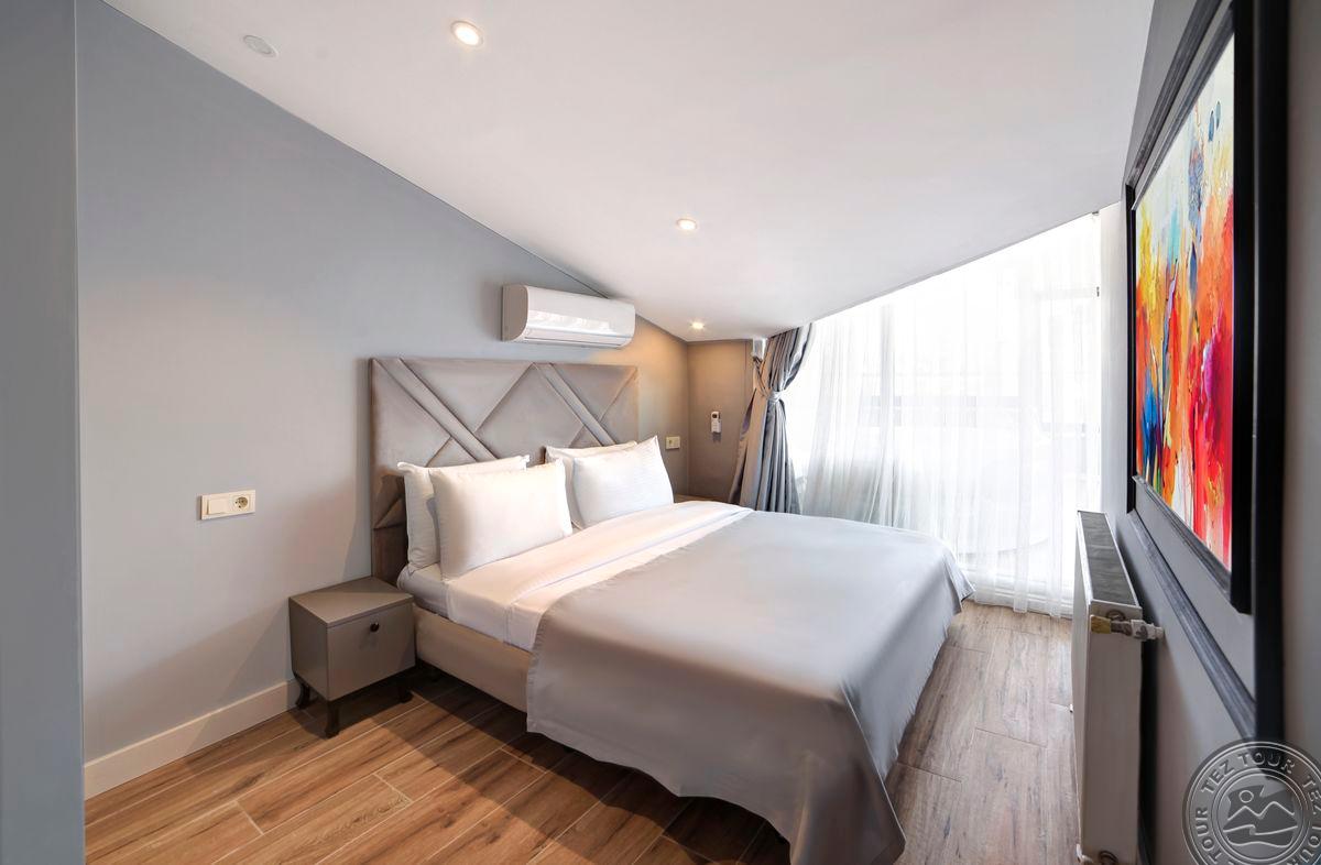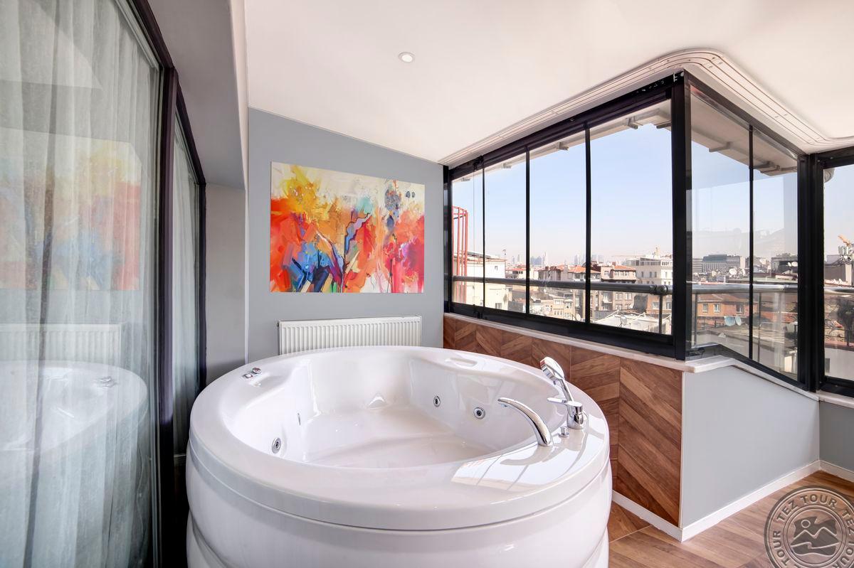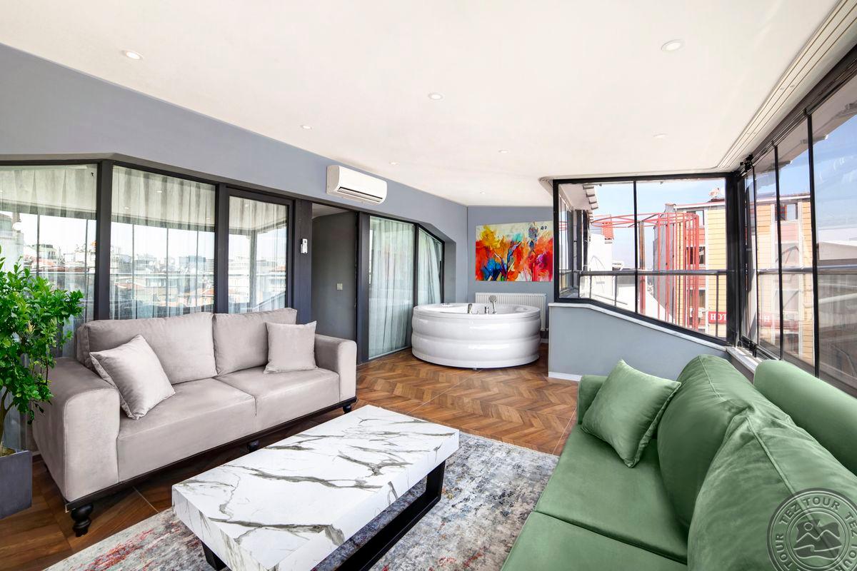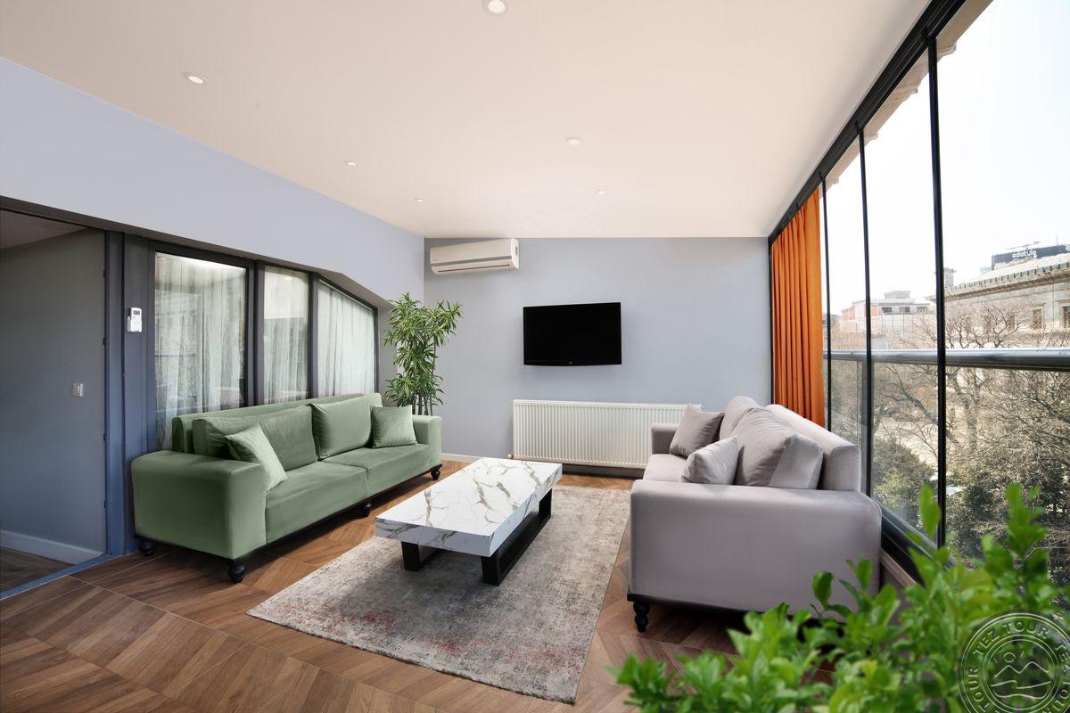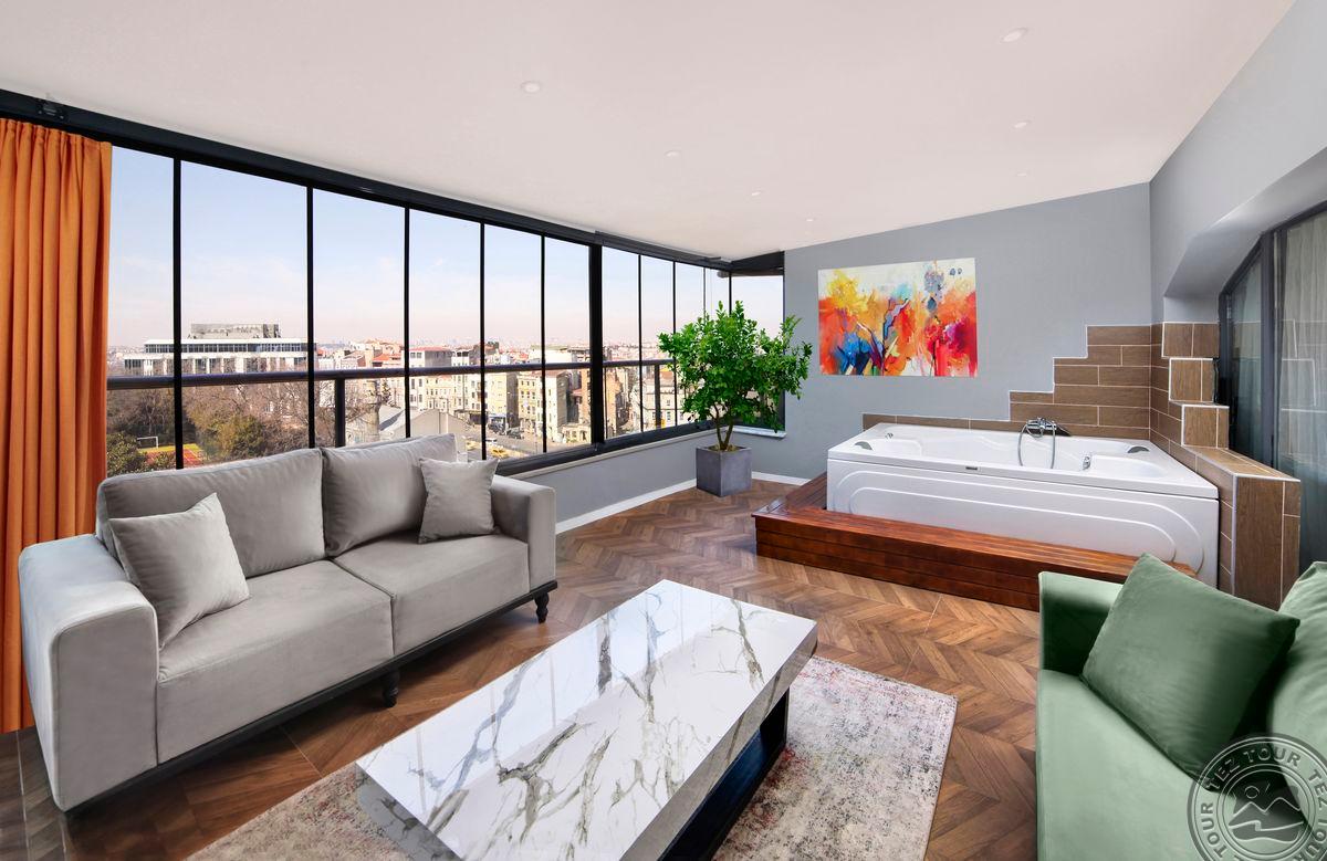 Отель расположен в районе Бейоглу. Популярные достопримечательности находятся вблизи отеля, включают улицу Истикляль, площадь Таксим и Галатскую башню. Комфортные современные номера с турецкой баней в номере, минимальная категория – Suite. Также отель предлагает полностью оборудованные апартамены с джакузи на террасе.